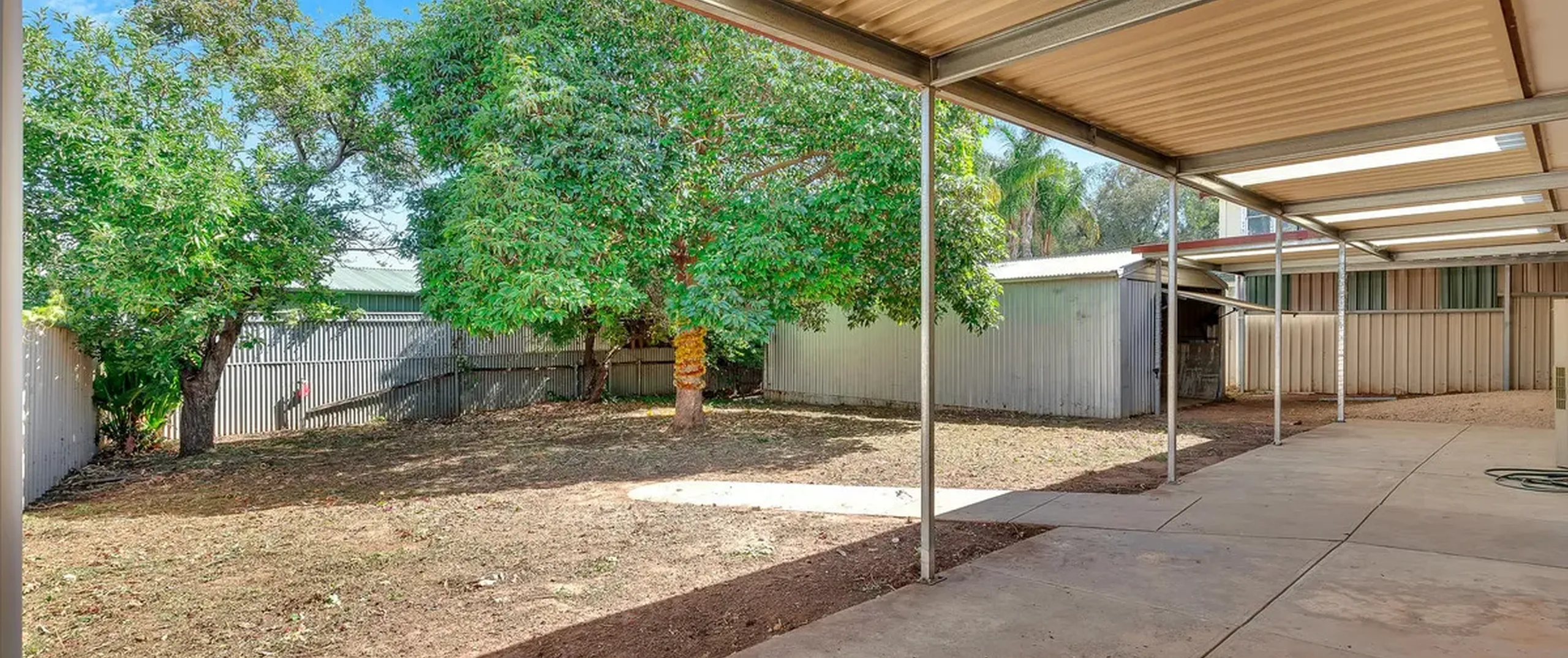 - Single lock up carport and additional side carport will roller door