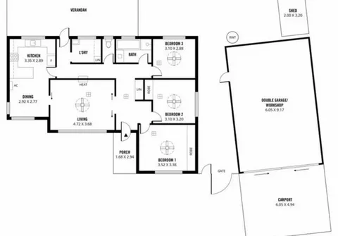 - Double carport with extra height to fit your caravan or boat