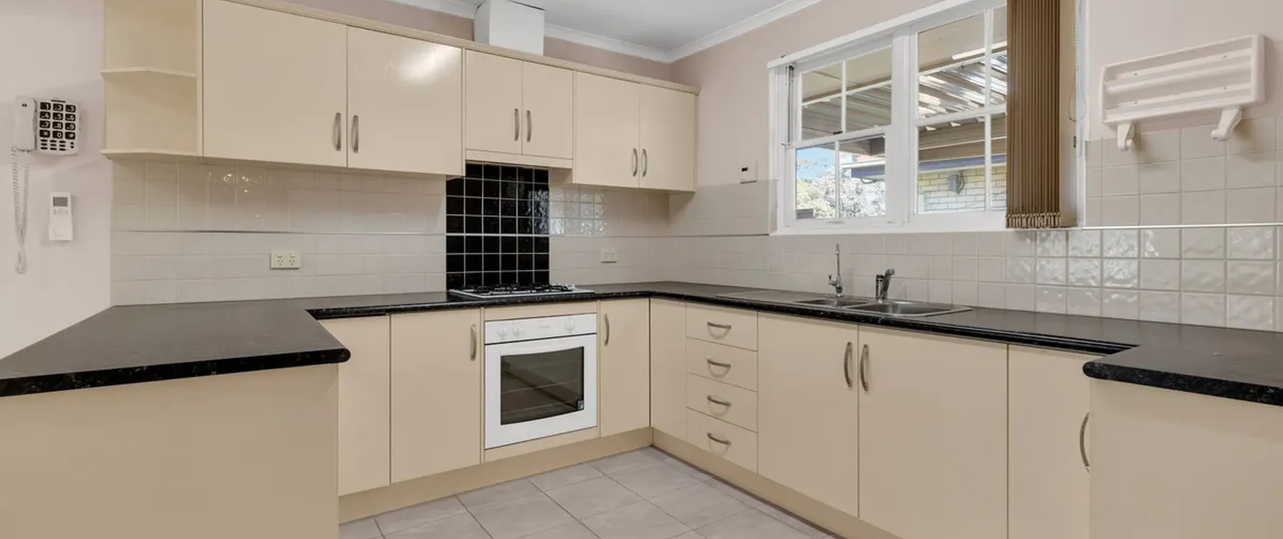 - Generous kitchen with oven, gas cook top, together with ample cupboard and bench space