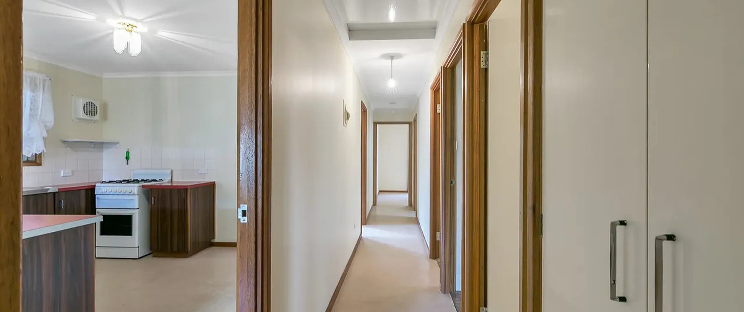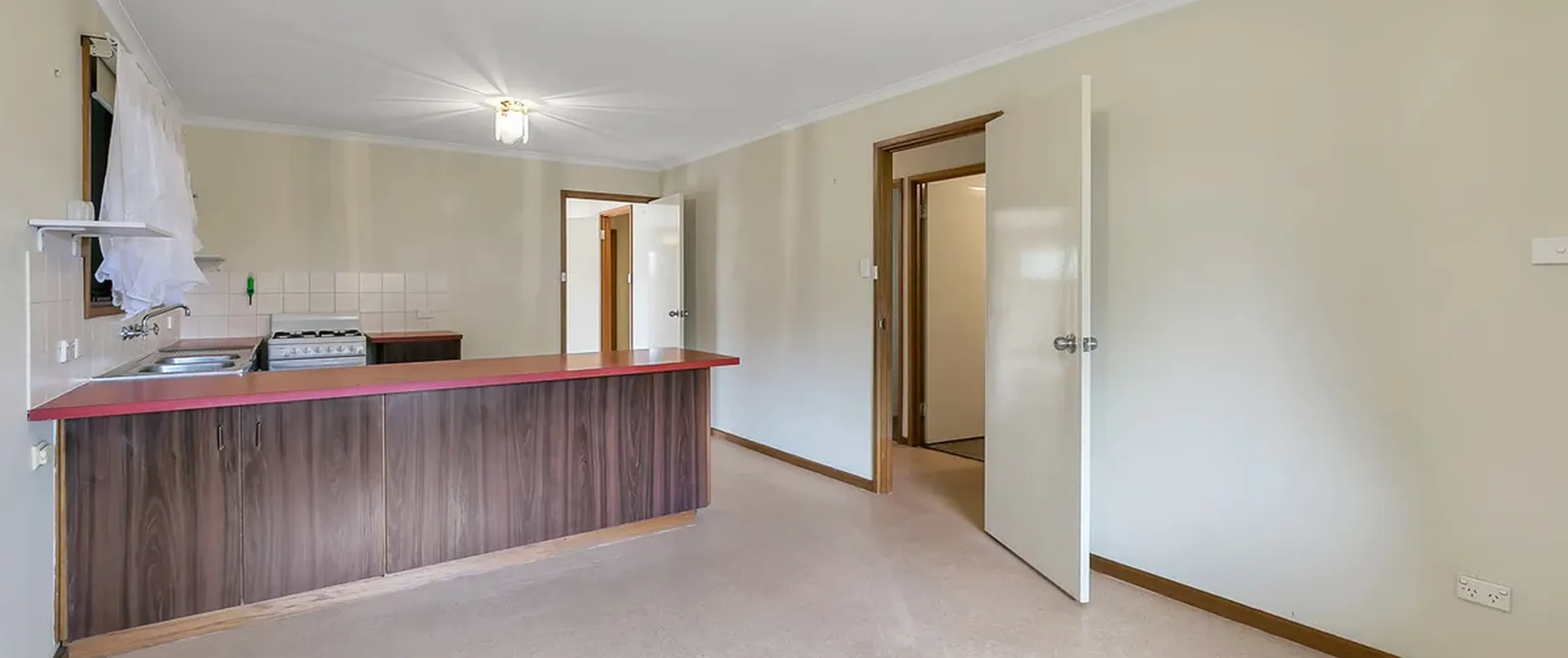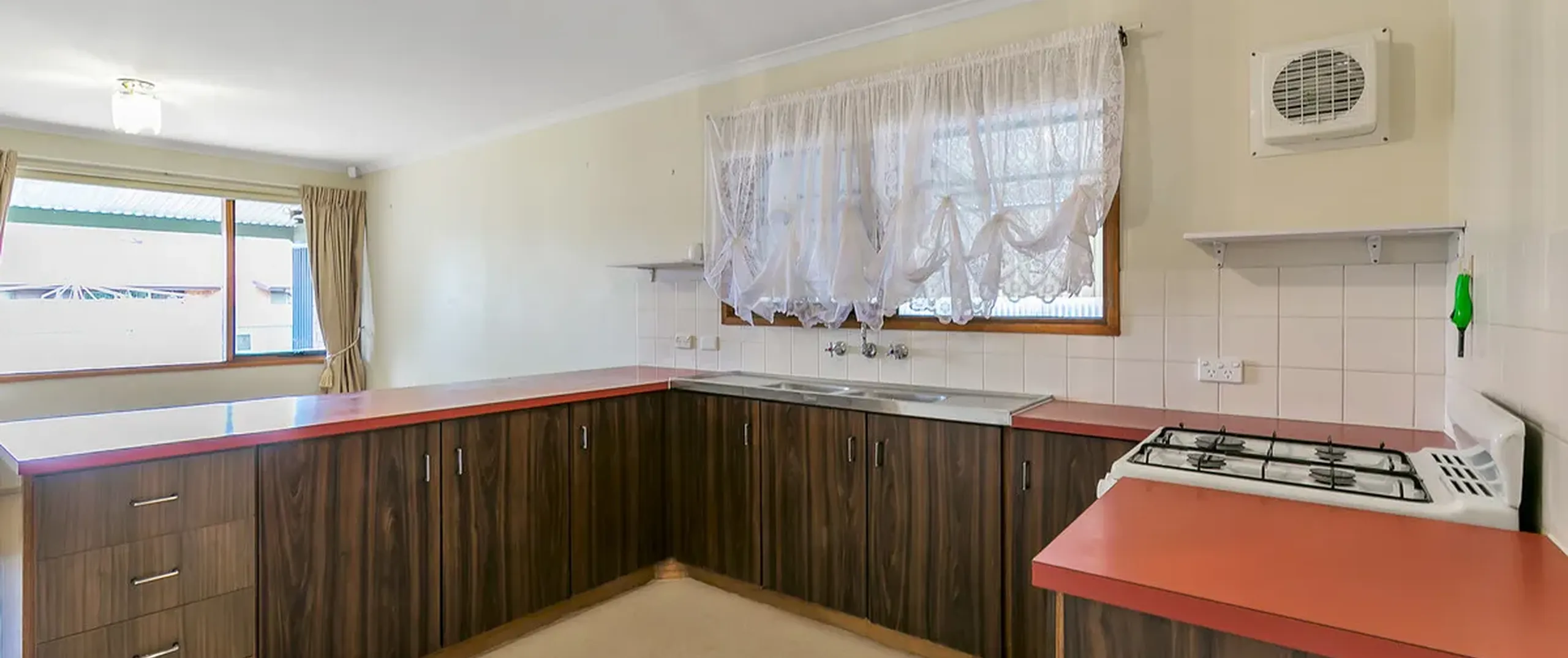 - Well-appointed kitchen complete with gas cooktop, oven, dual sink and ample cupboard and bench space