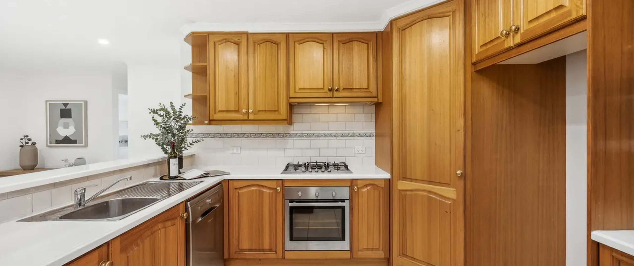 - Neat and tidy kitchen with dishwasher, gas cooktop and plenty of cupboard space, breakfast bar overlooking the family area and a skylight providing plenty of natural light