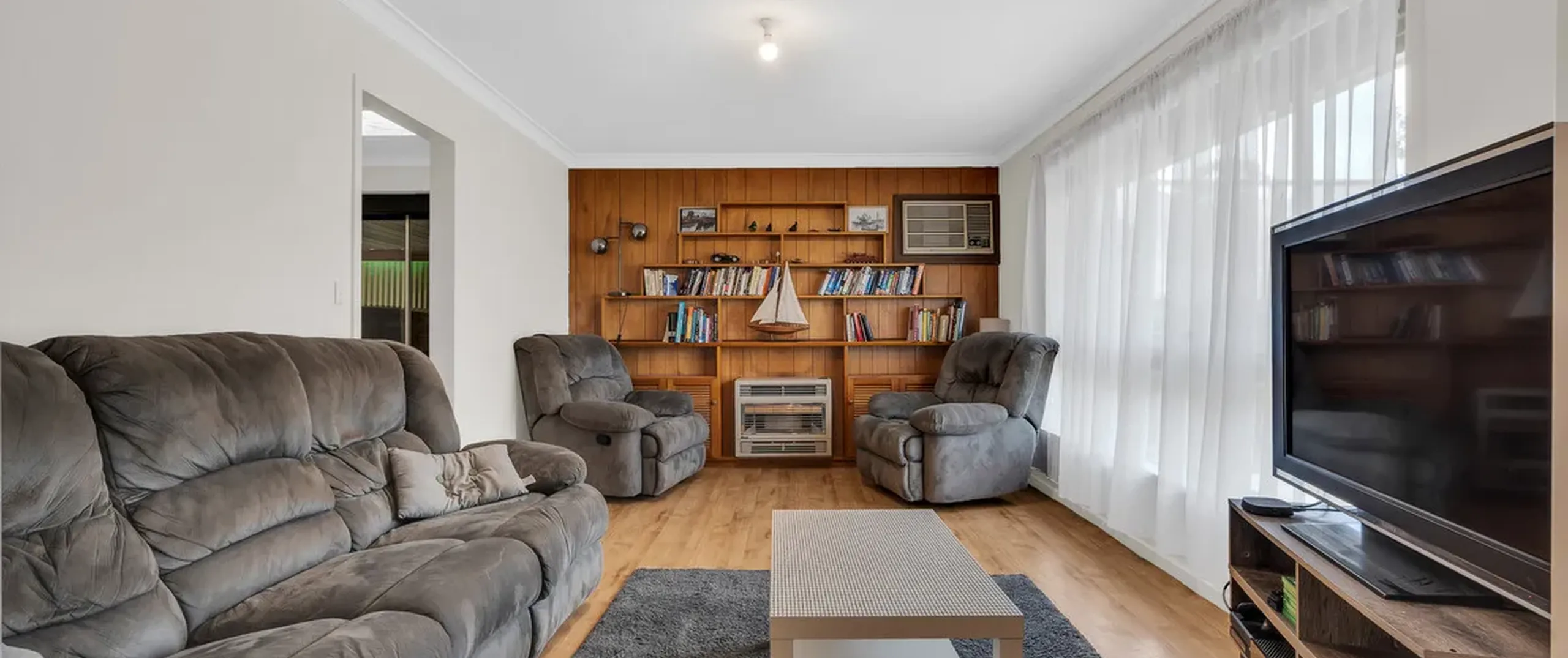 EXCLUSIONS: Rear shed and box air conditioner in loungeroom.