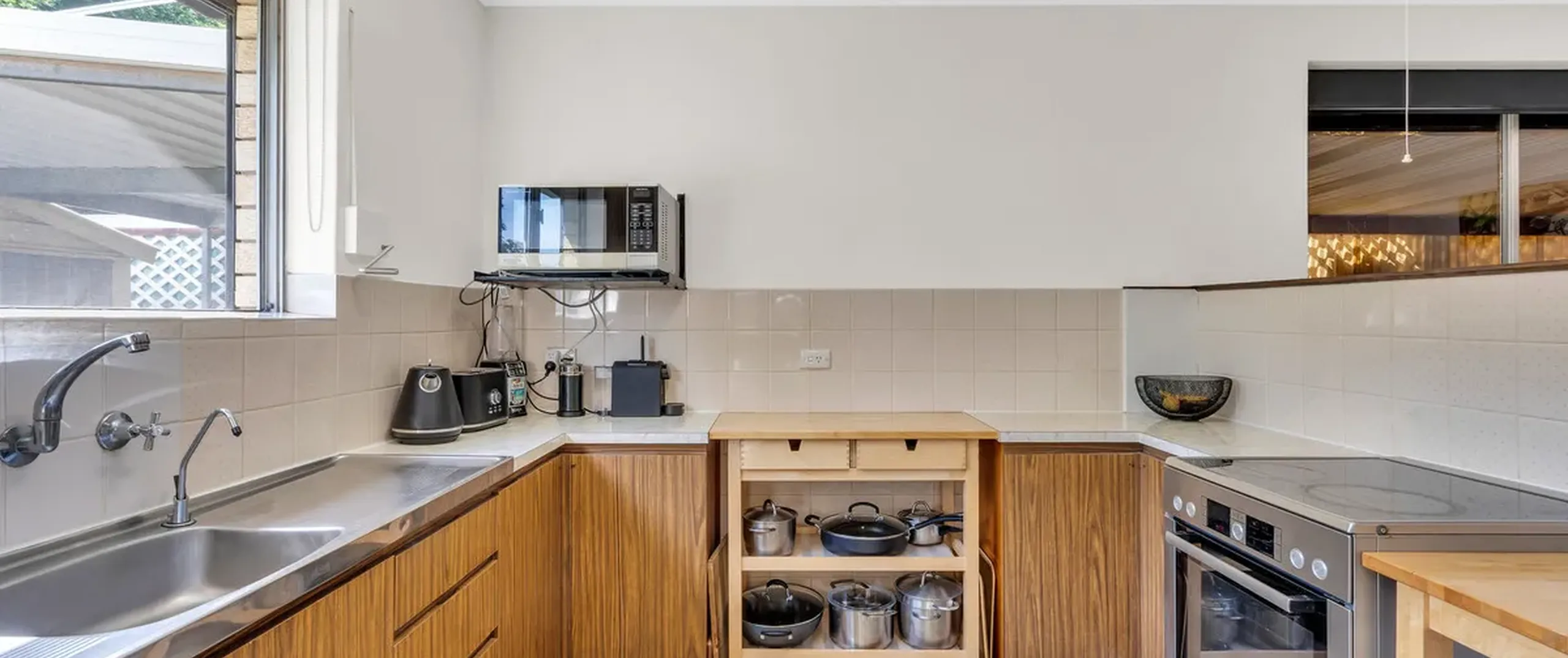 - Practical kitchen with an electric cooktop, walk in pantry and ample cupboard and bench space