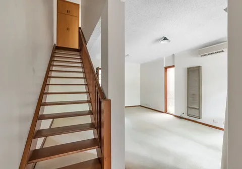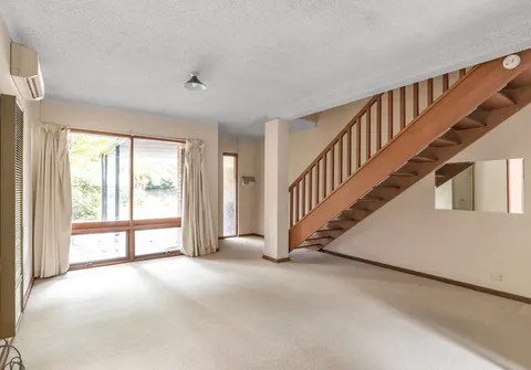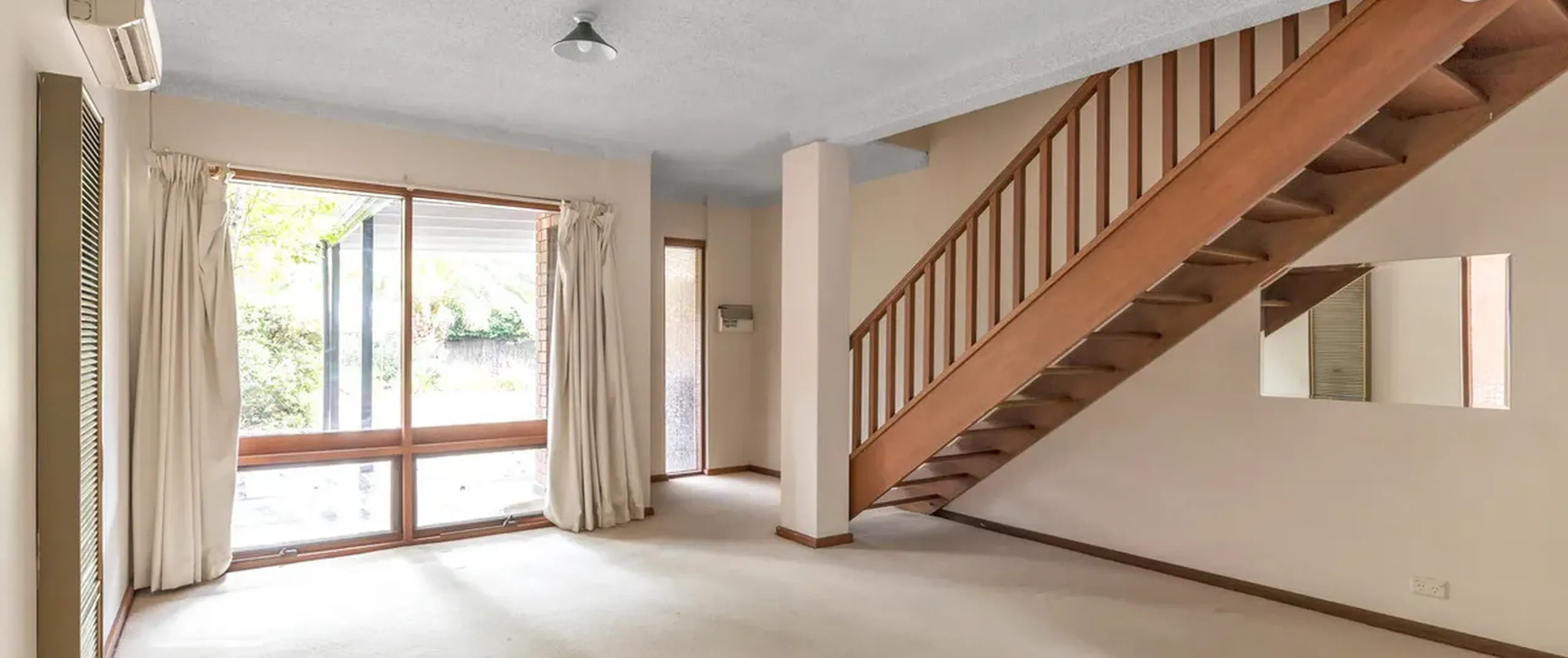 - Light filled living area with a split-system air conditioner and gas wall heater