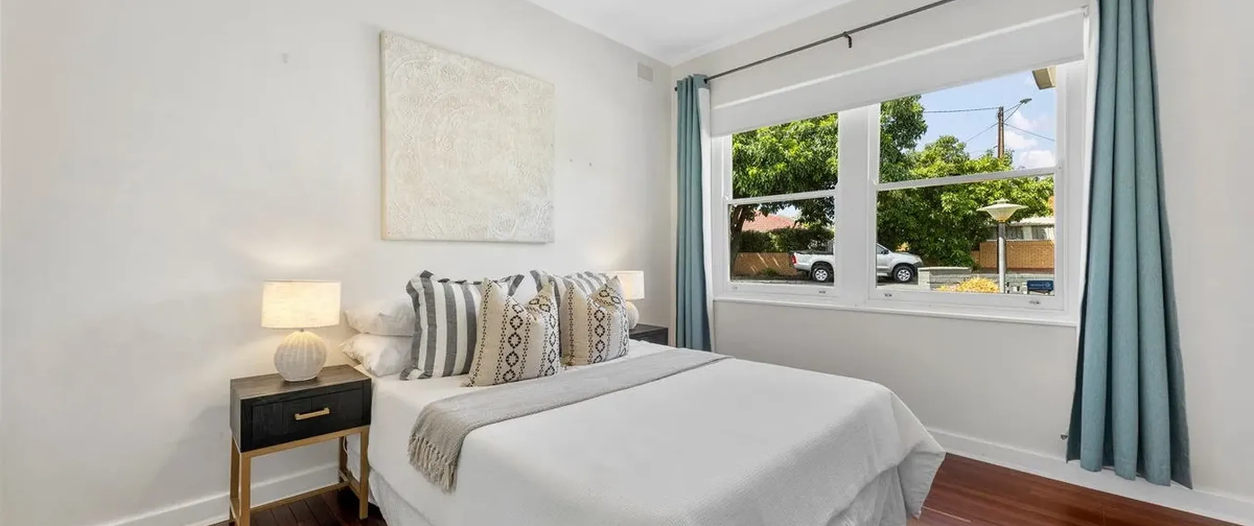 - 2 bright ground floor bedrooms, with timber floors and 1 with ceiling fans