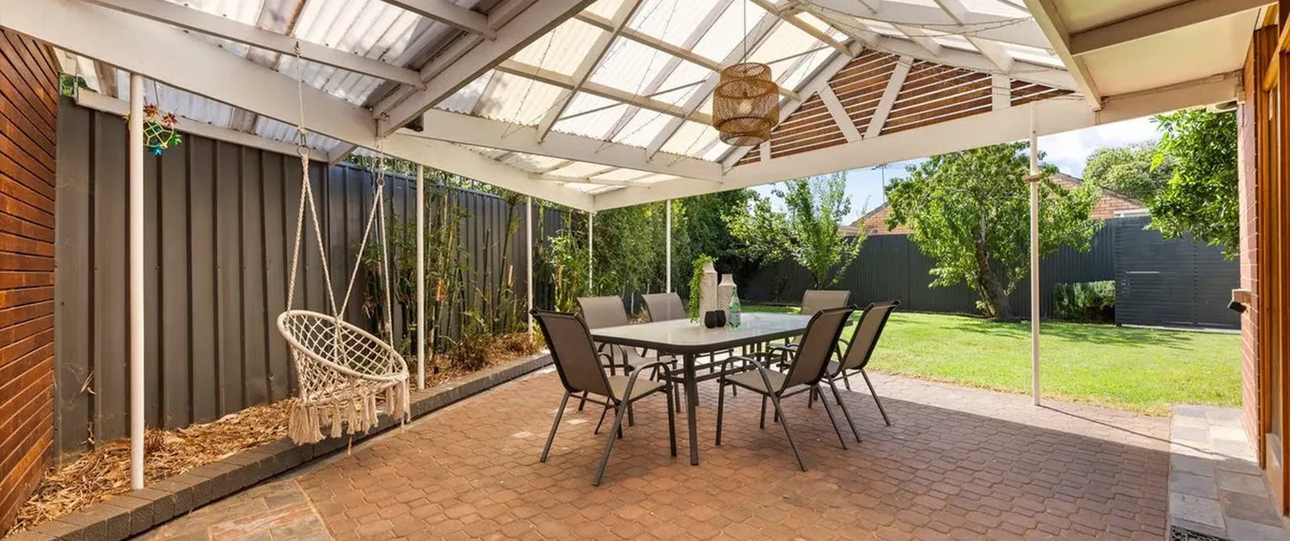 - Lovely low maintenance outdoor entertaining area with all-weather pitched pergola
