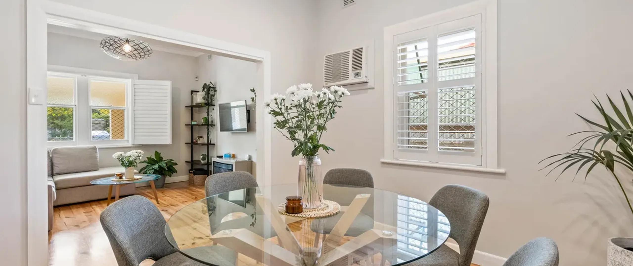 - Dining adjacent living area with air conditioner