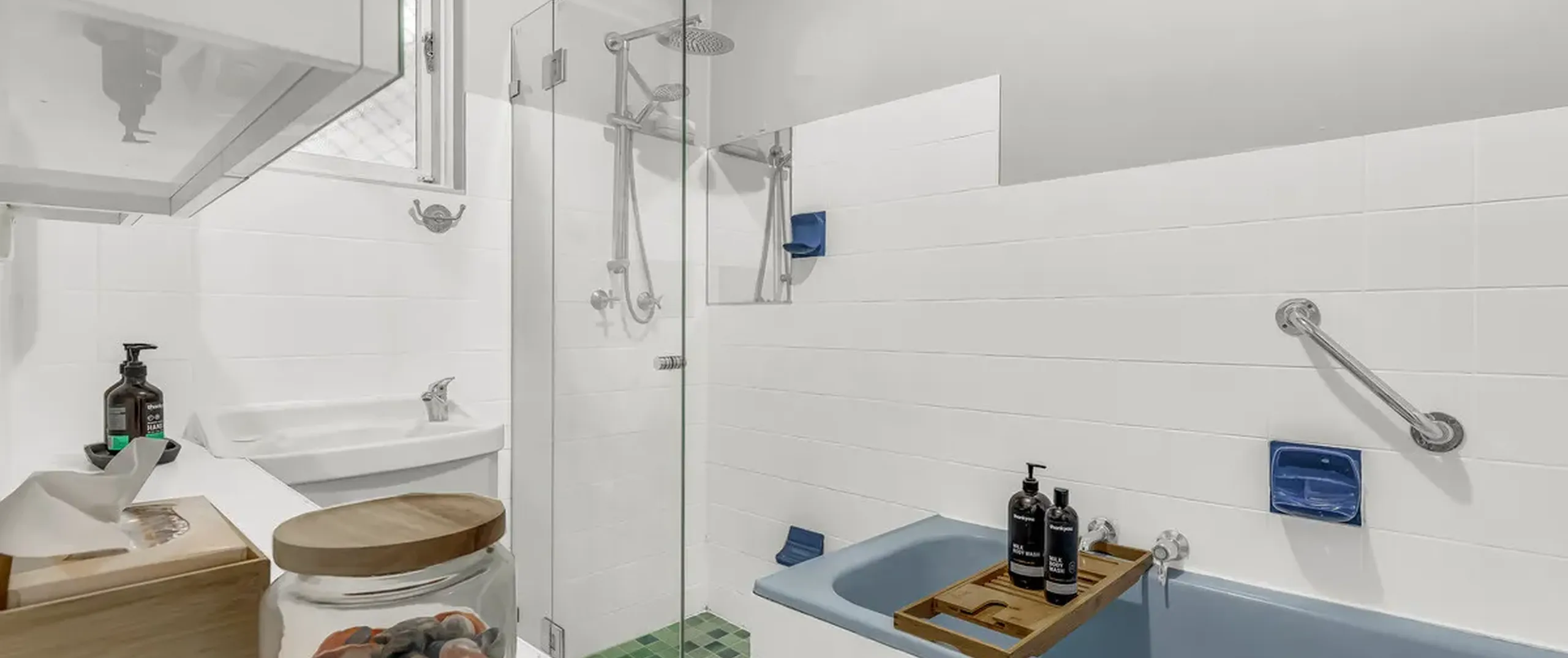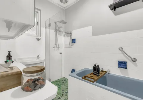 - Large main bathroom with separate shower and bath