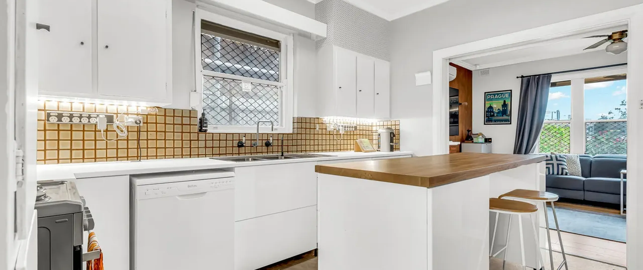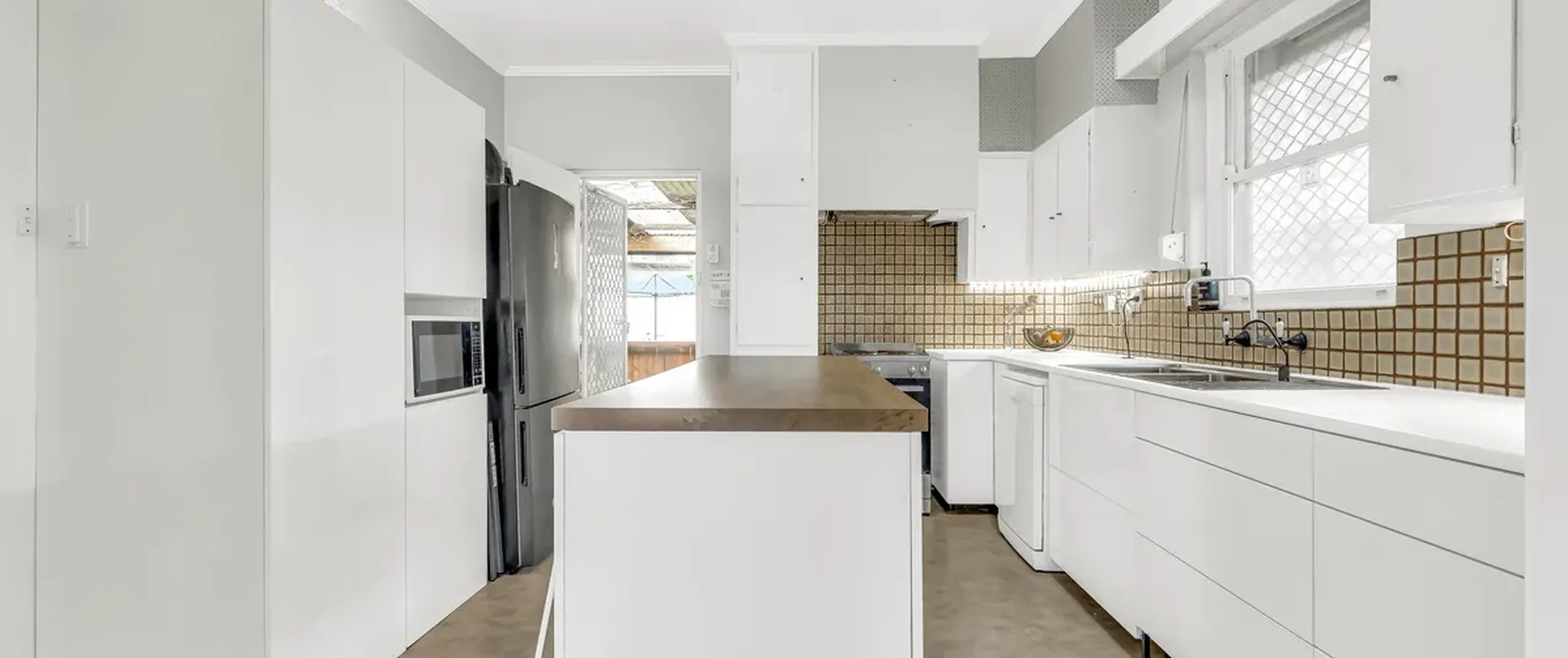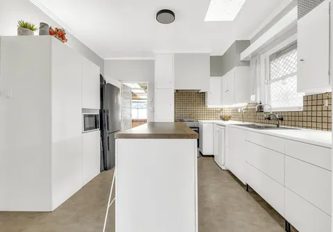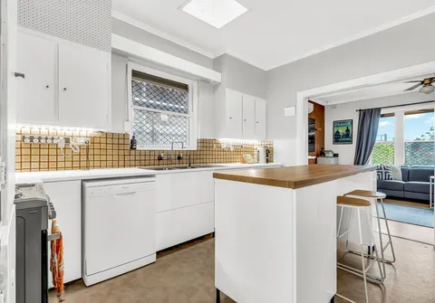 - Large Kitchen with island bench and ample storage space and overhead storage