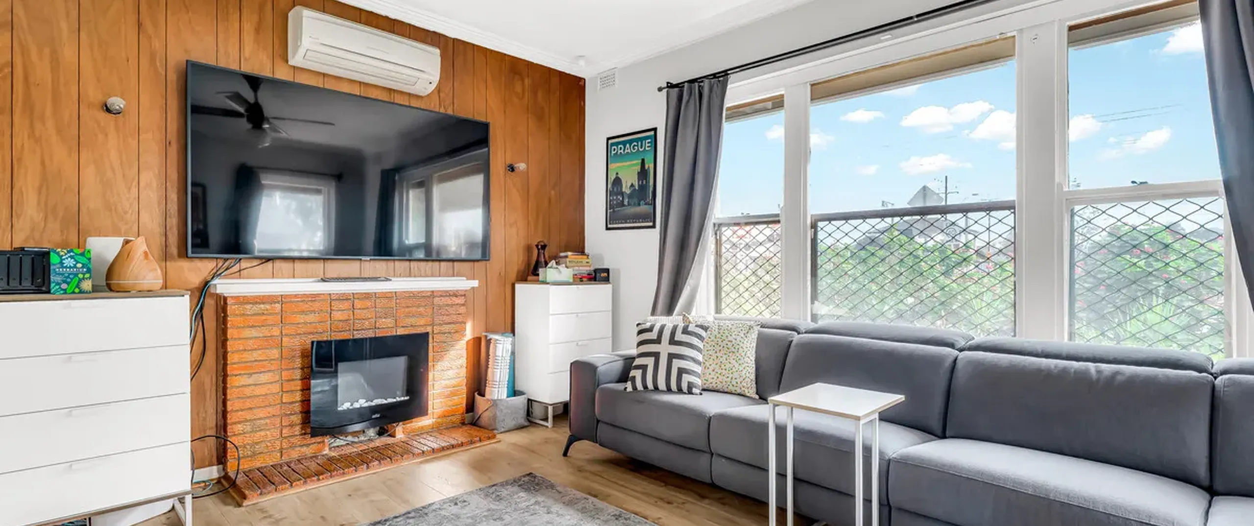 - Good size lounge with electric wall heater and wall unit split system heat/cool