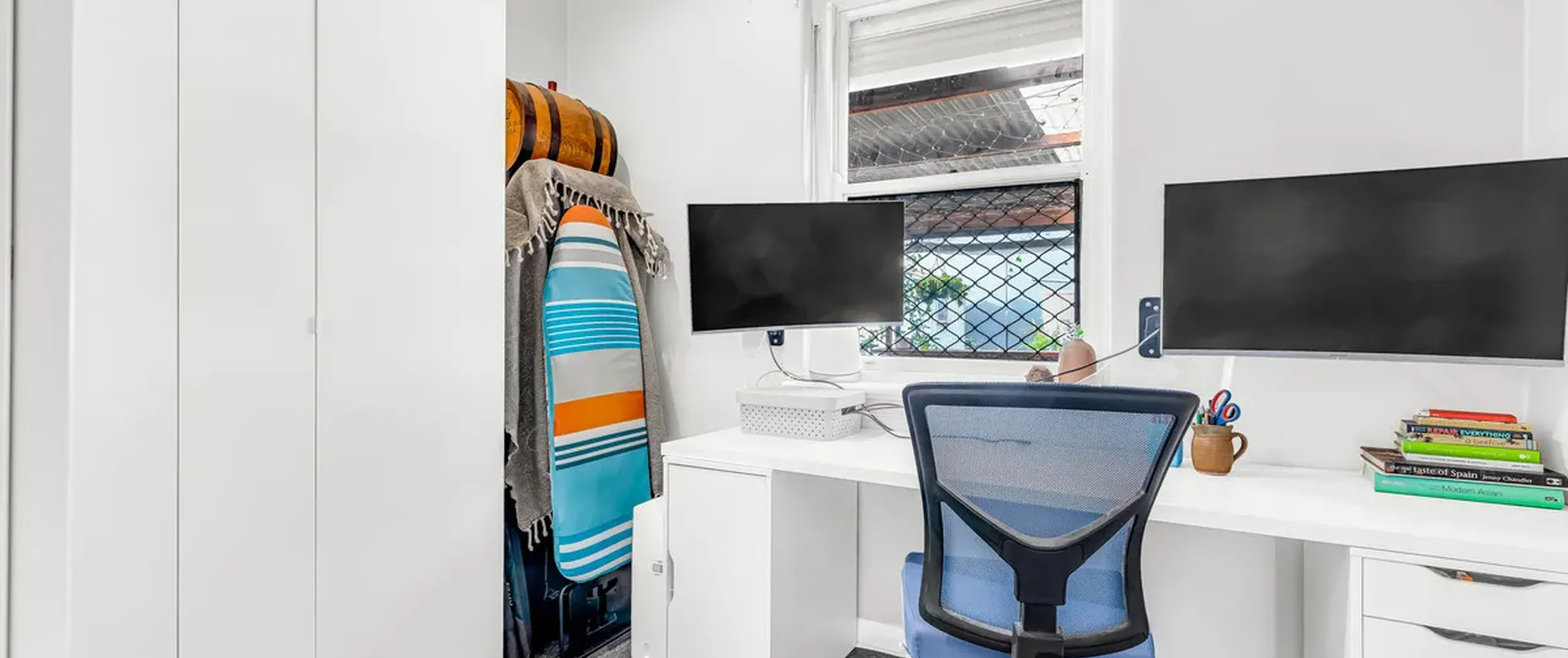 - Bedroom 3 or potential study with large built-in wardrobes and ceiling fan