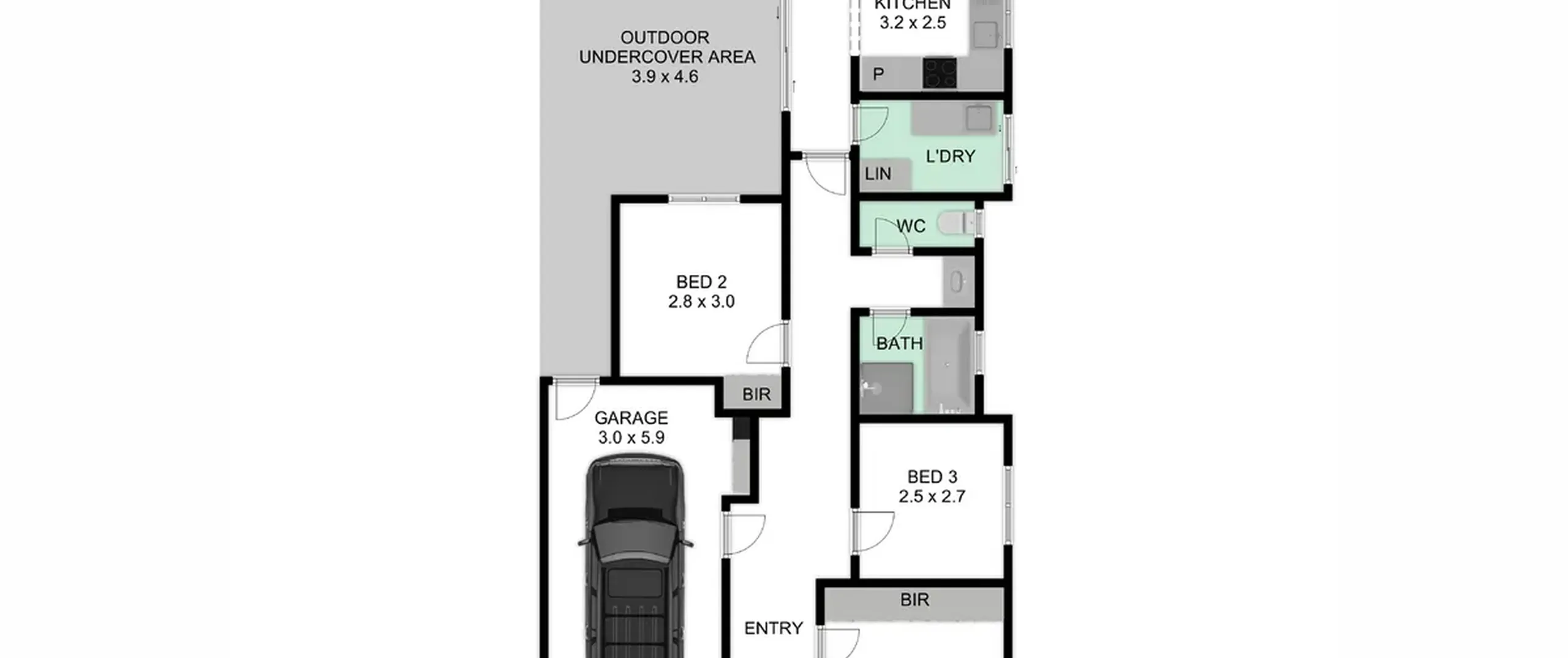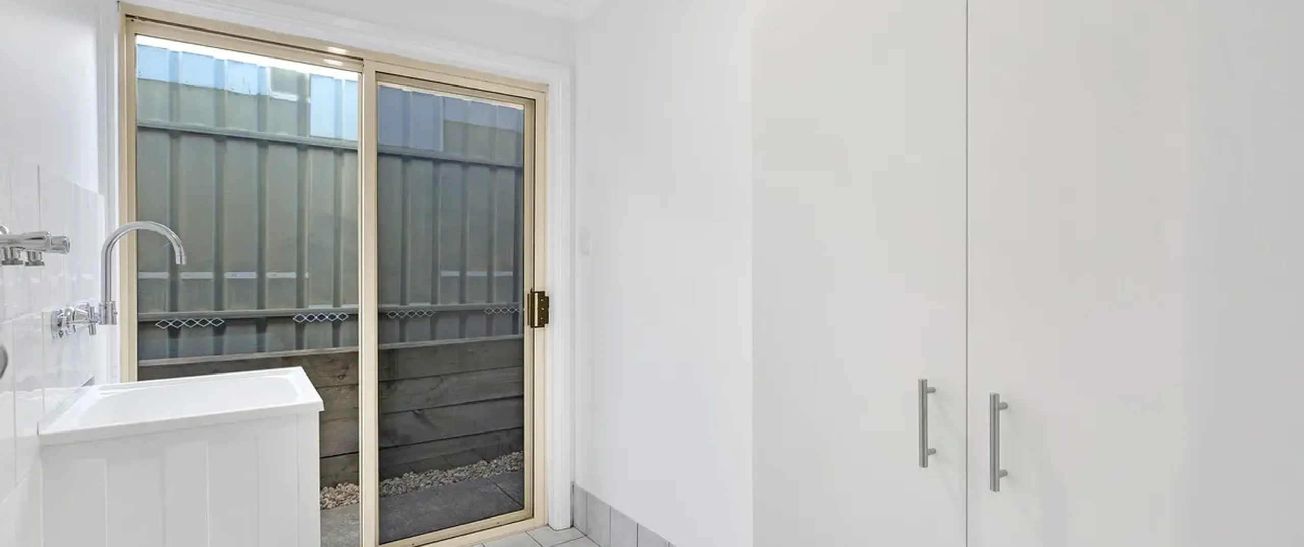 - Separate laundry with built-in cupboard providing practical storage