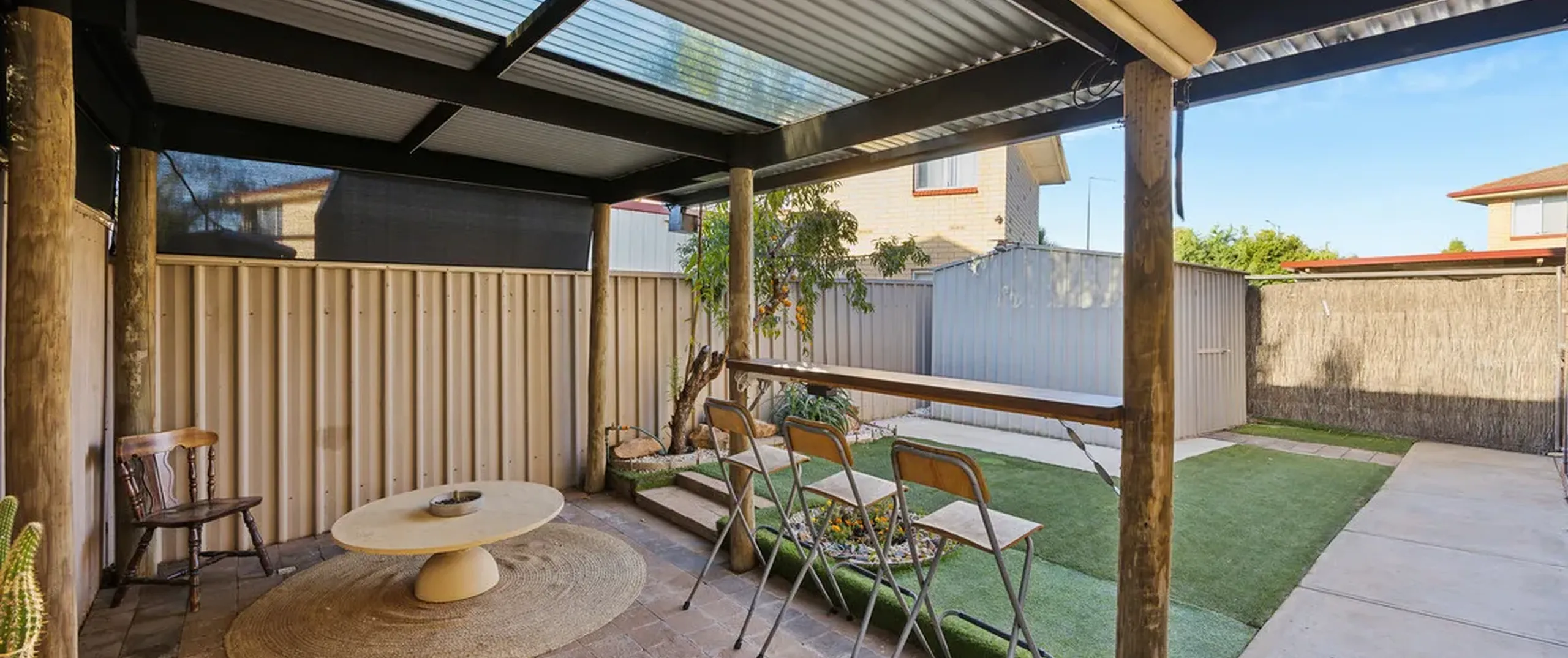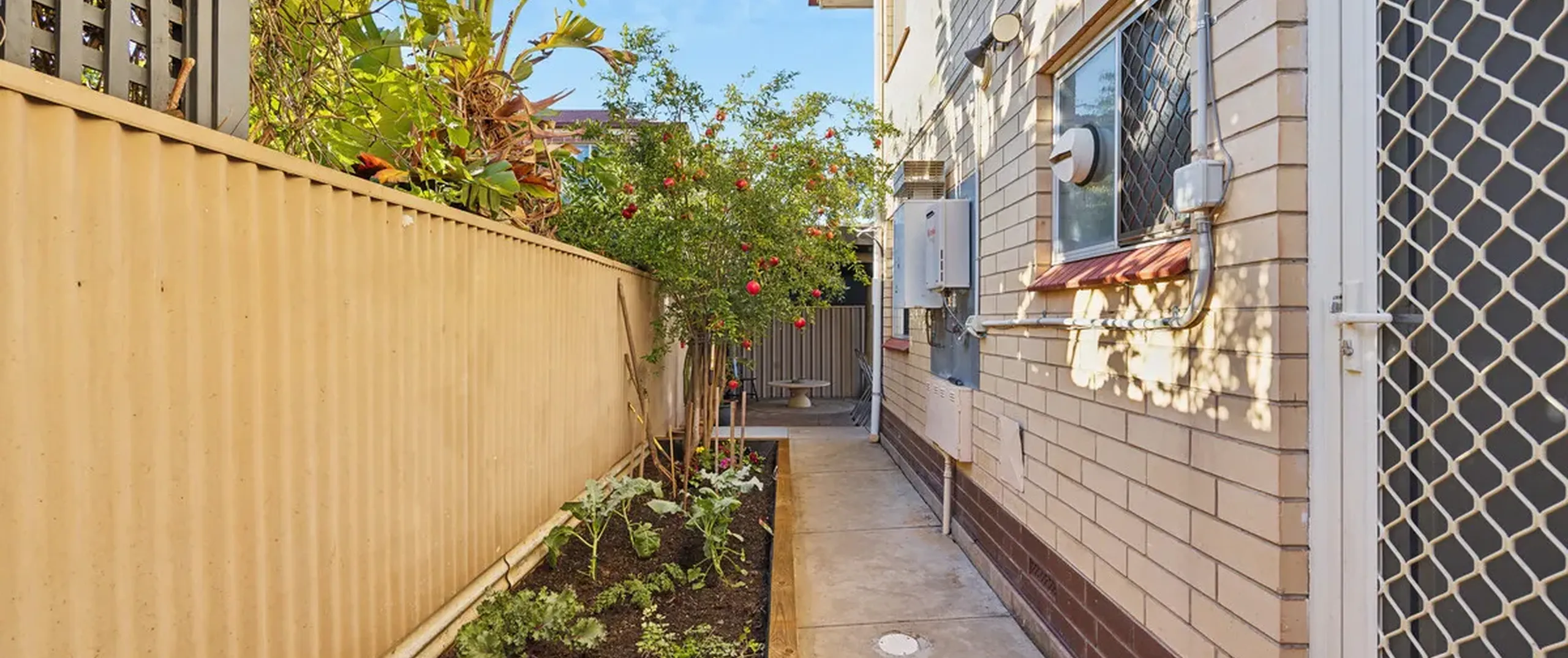 - Backyard also includes fruit trees, veggie patch/planter box and a rain water tank