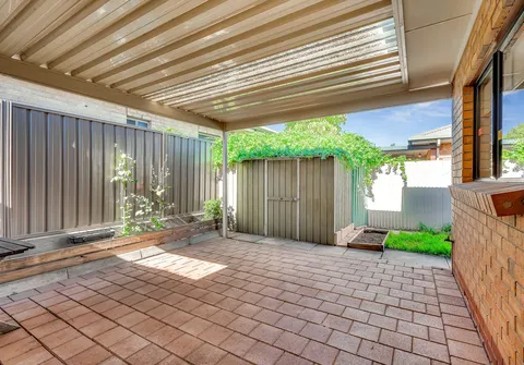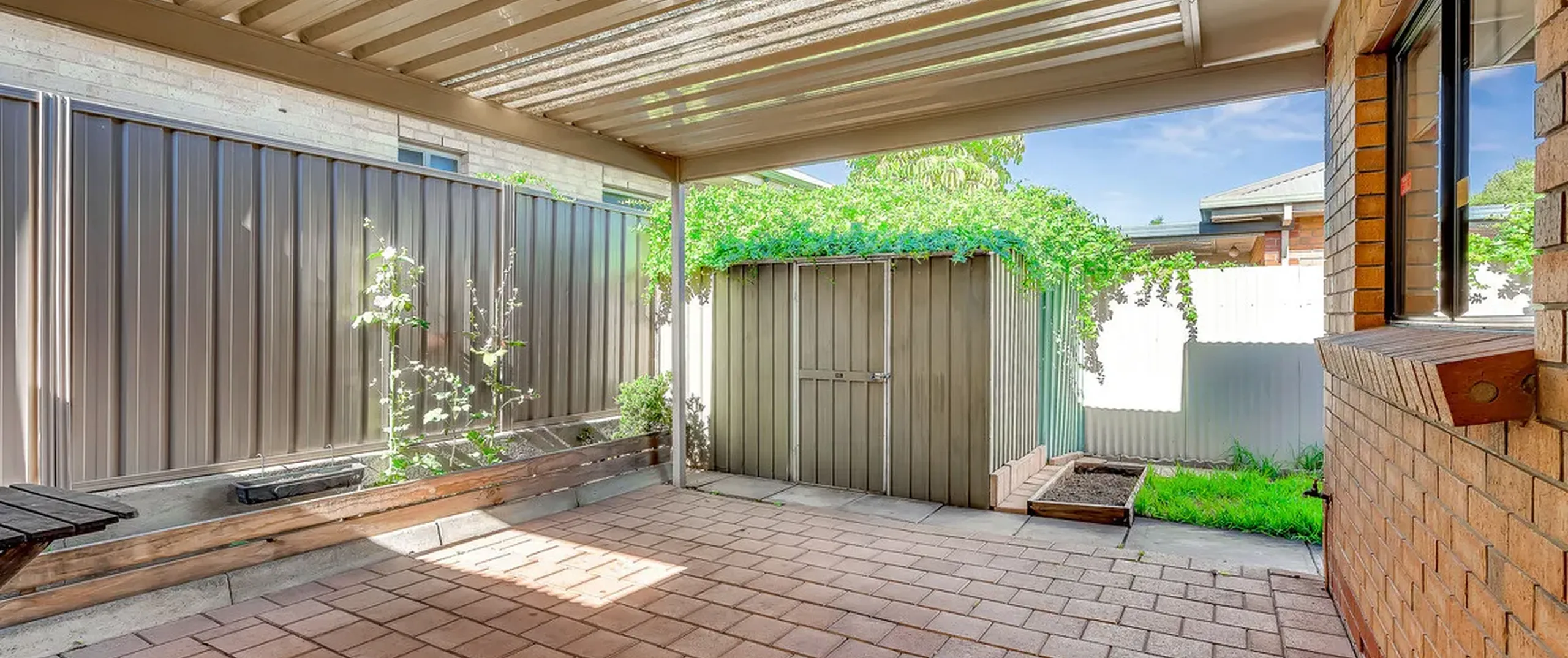 - Small fenced courtyard with garden shed