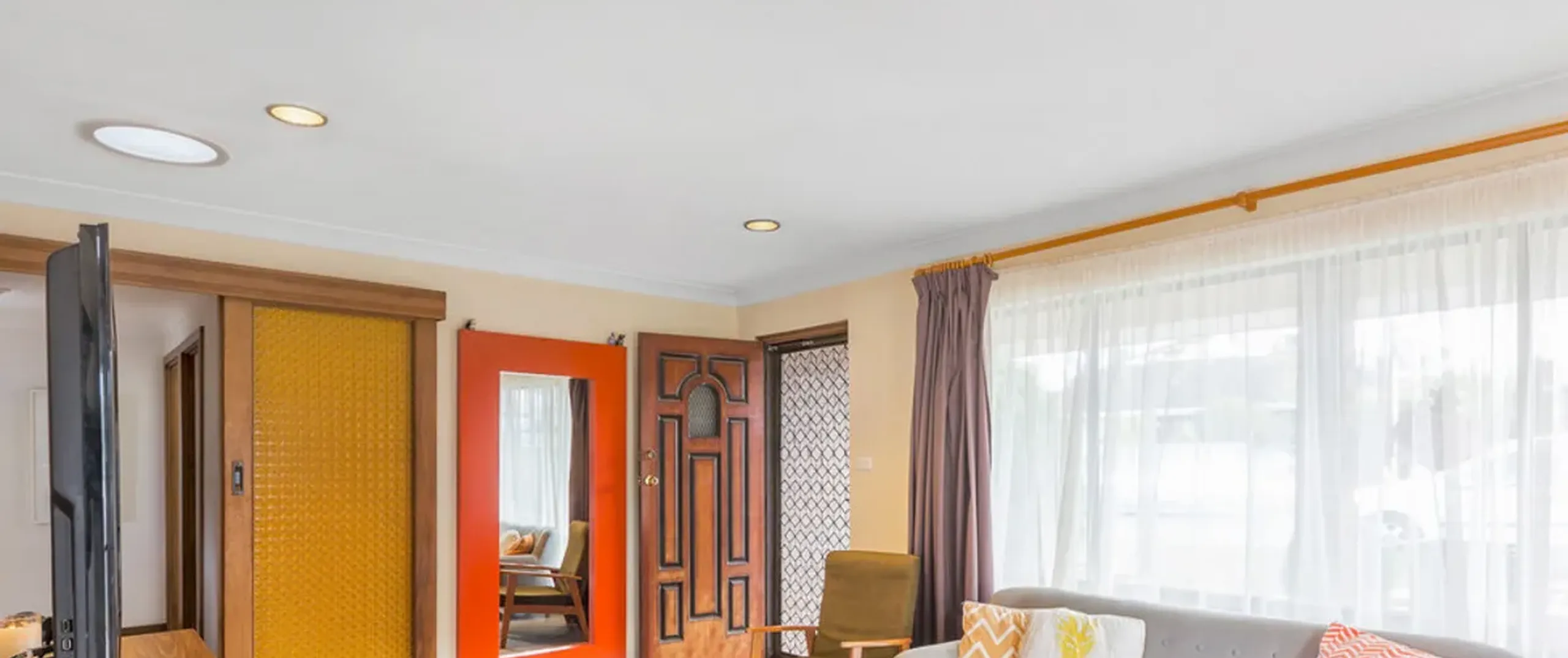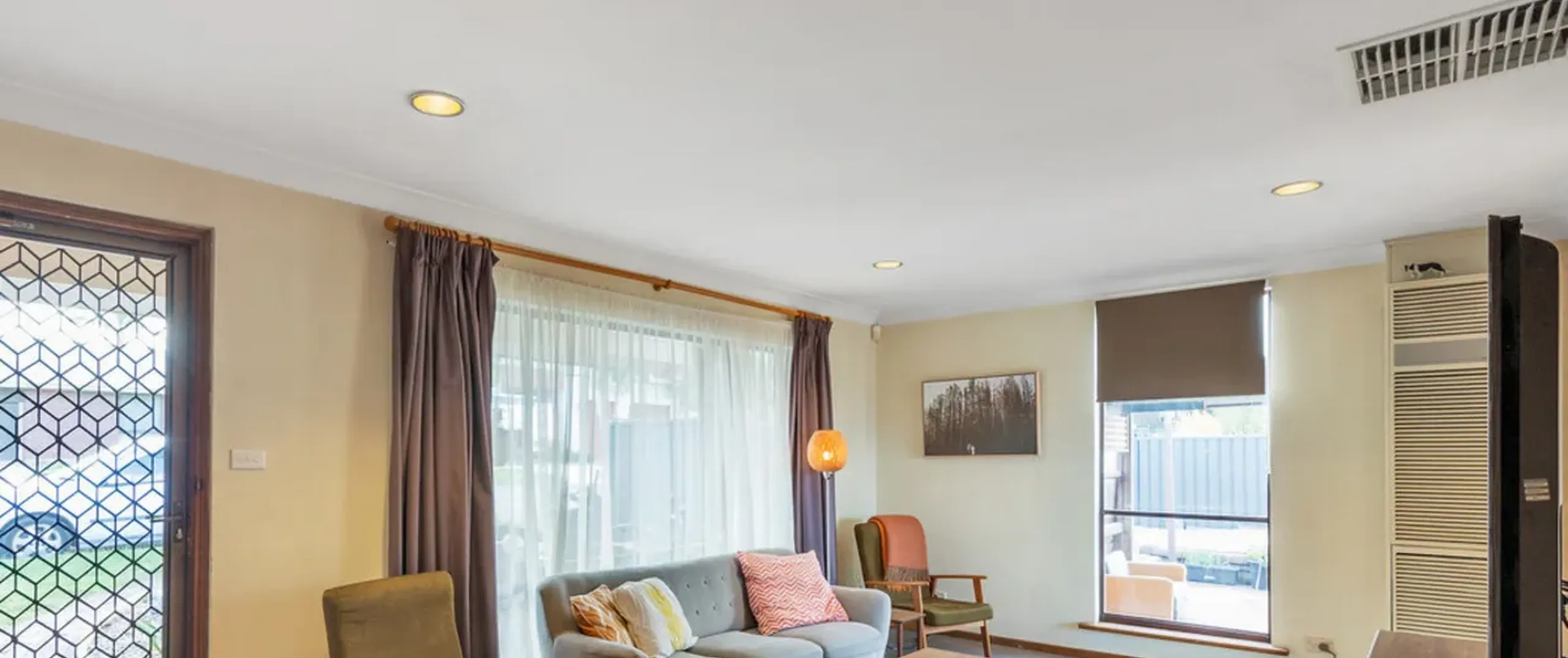 - Light-filled front lounge area with gas wall heater