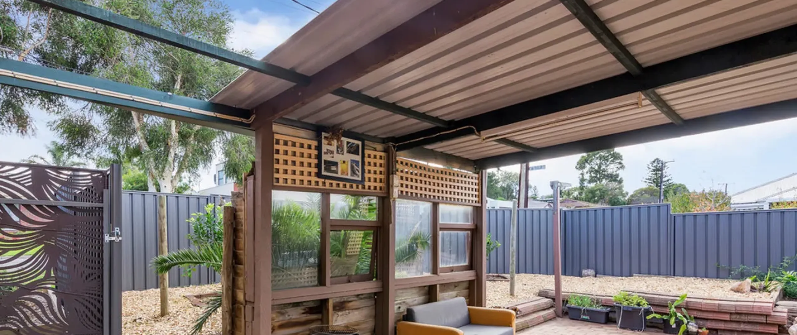 - Undercover, paved area at rear with low maintenance gardens