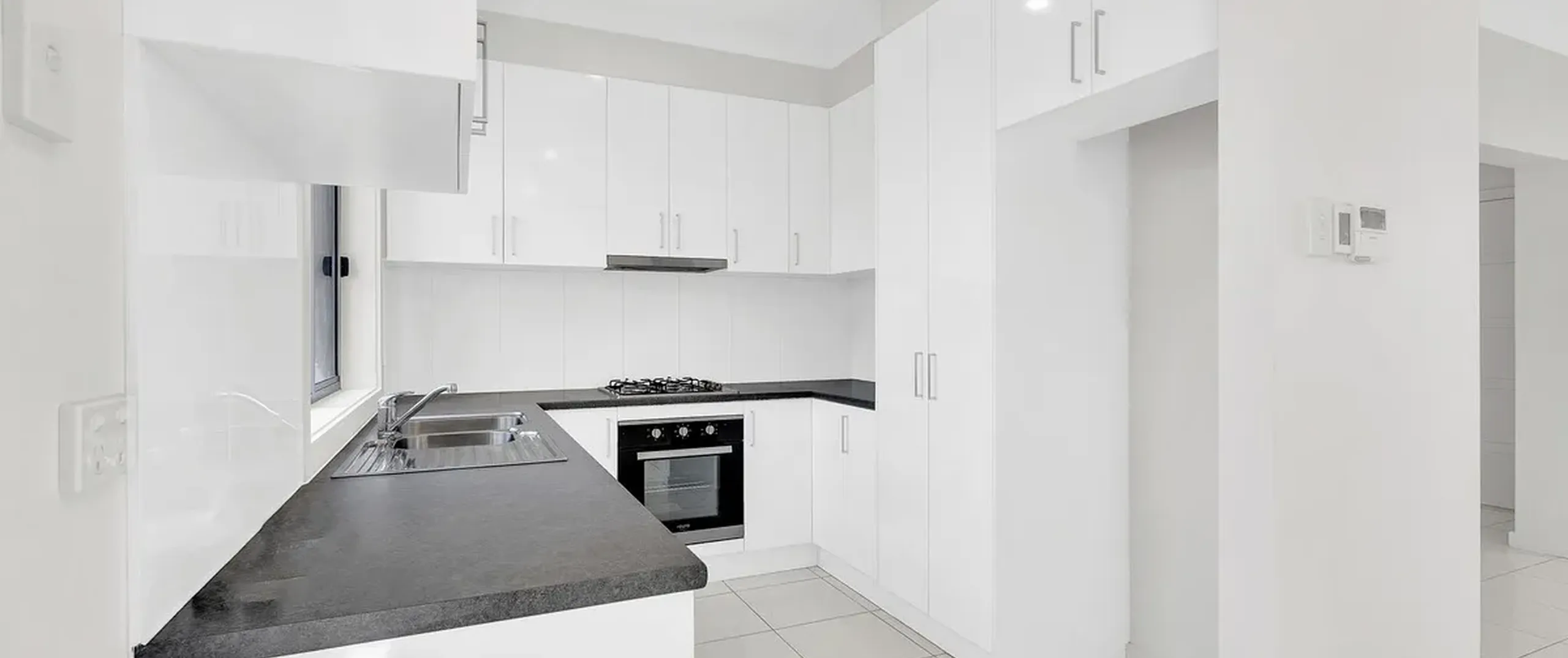 - Contemporary U-shaped kitchen boasts stainless steel appliances including gas cook top, oven, range hood, dishwasher, 1.5 sink, built in pantry and abundance of bench and cupboard space