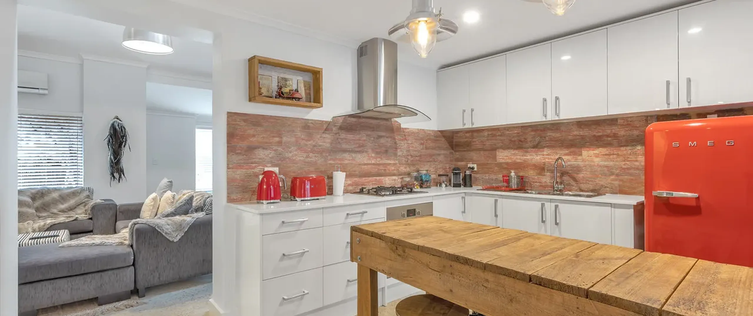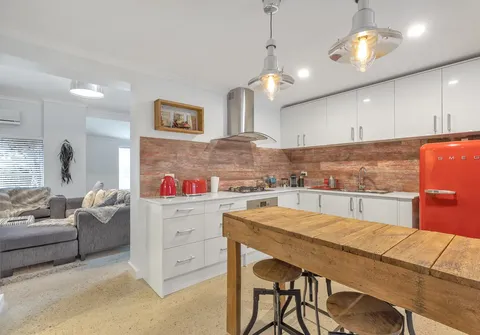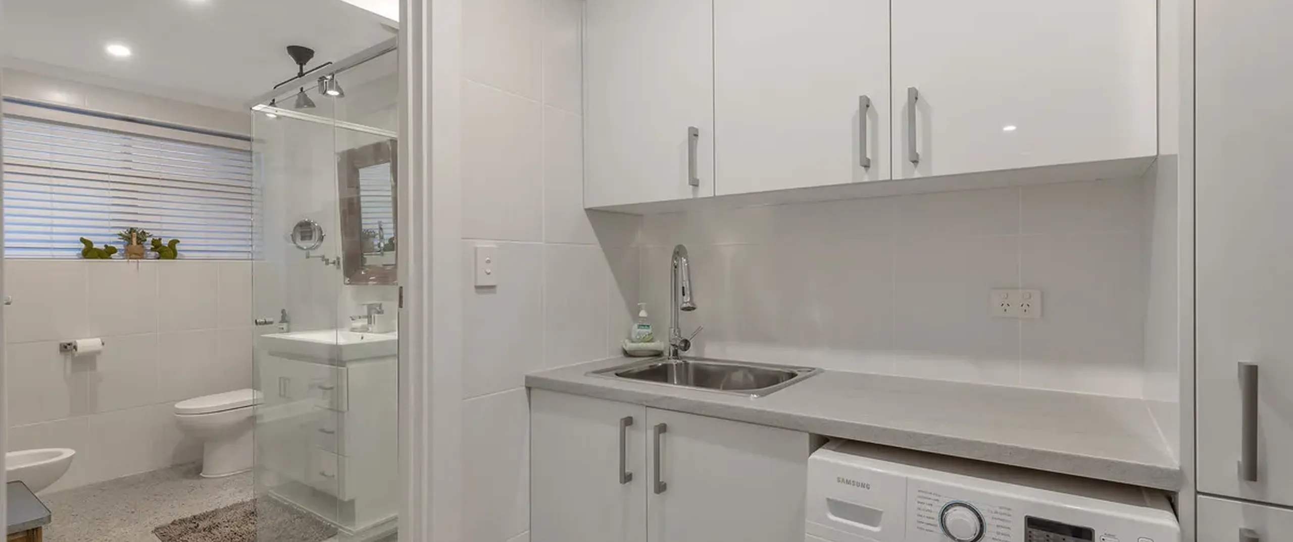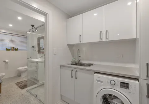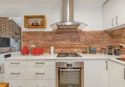 - Sleek on-trend kitchen with stainless steel oven and gas cooktop, feature splash back, ample cupboard and bench space
