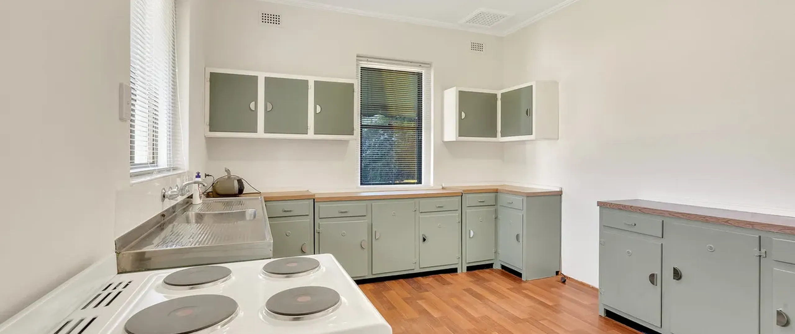 - Kitchen with electric cooking and fan forced oven and ample cupboard and bench space