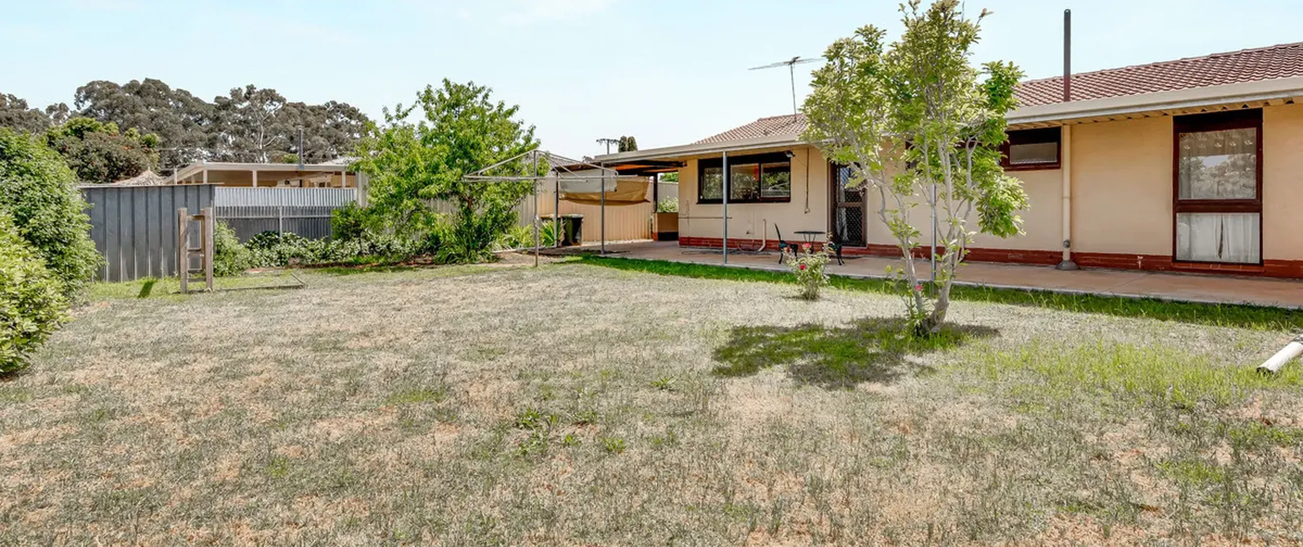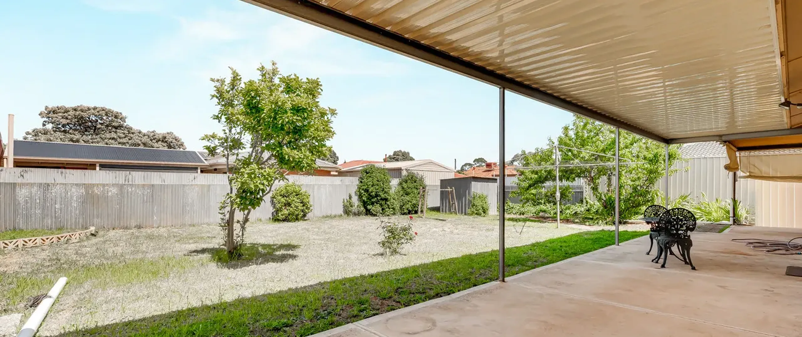 - Rear verandah covering the length of the home overlooking the low maintenance yard with clothesline and shed