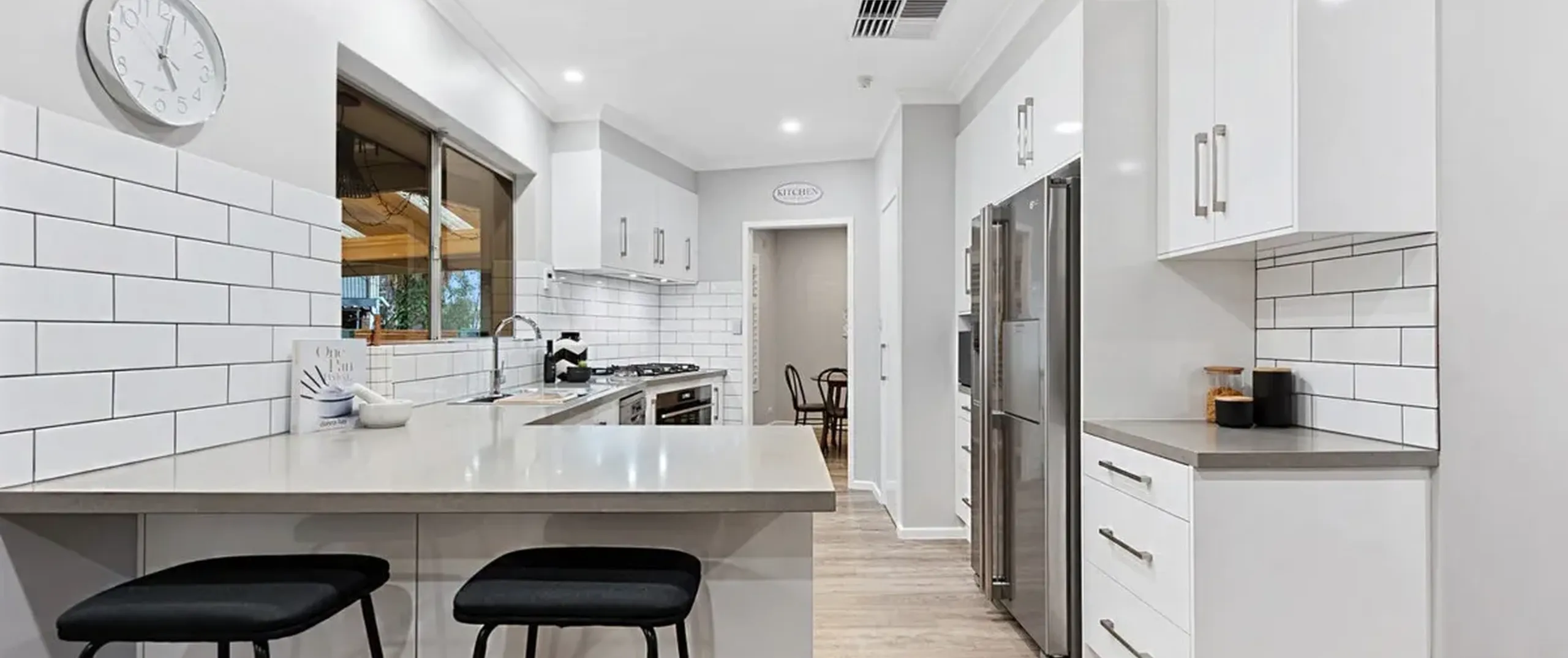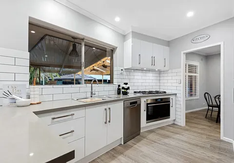- Updated kitchen with modern bench tops, gas cooktop, single sink and ample storage space