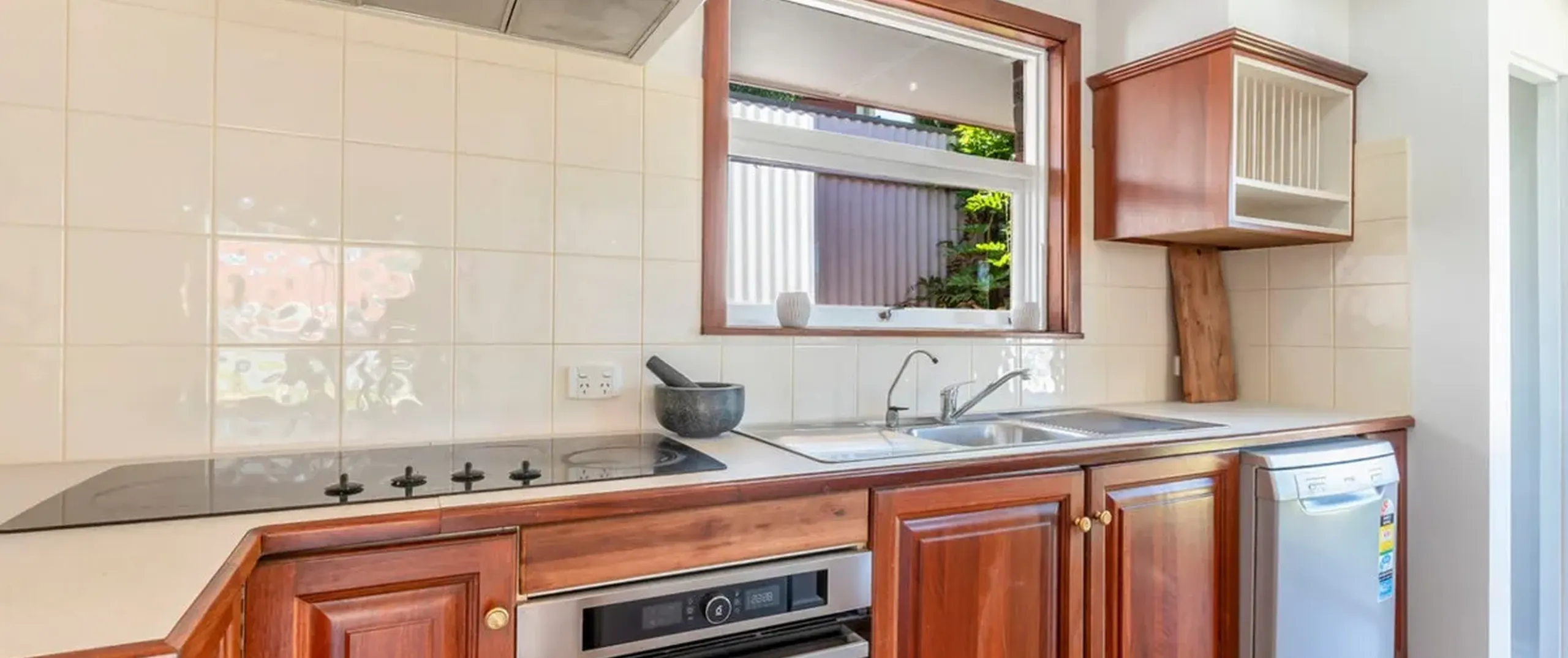 - Timber kitchen featuring, electric cooktop, oven, dishwasher, pantry, ample storage, and bench space