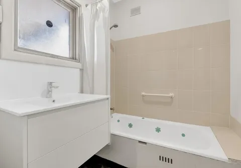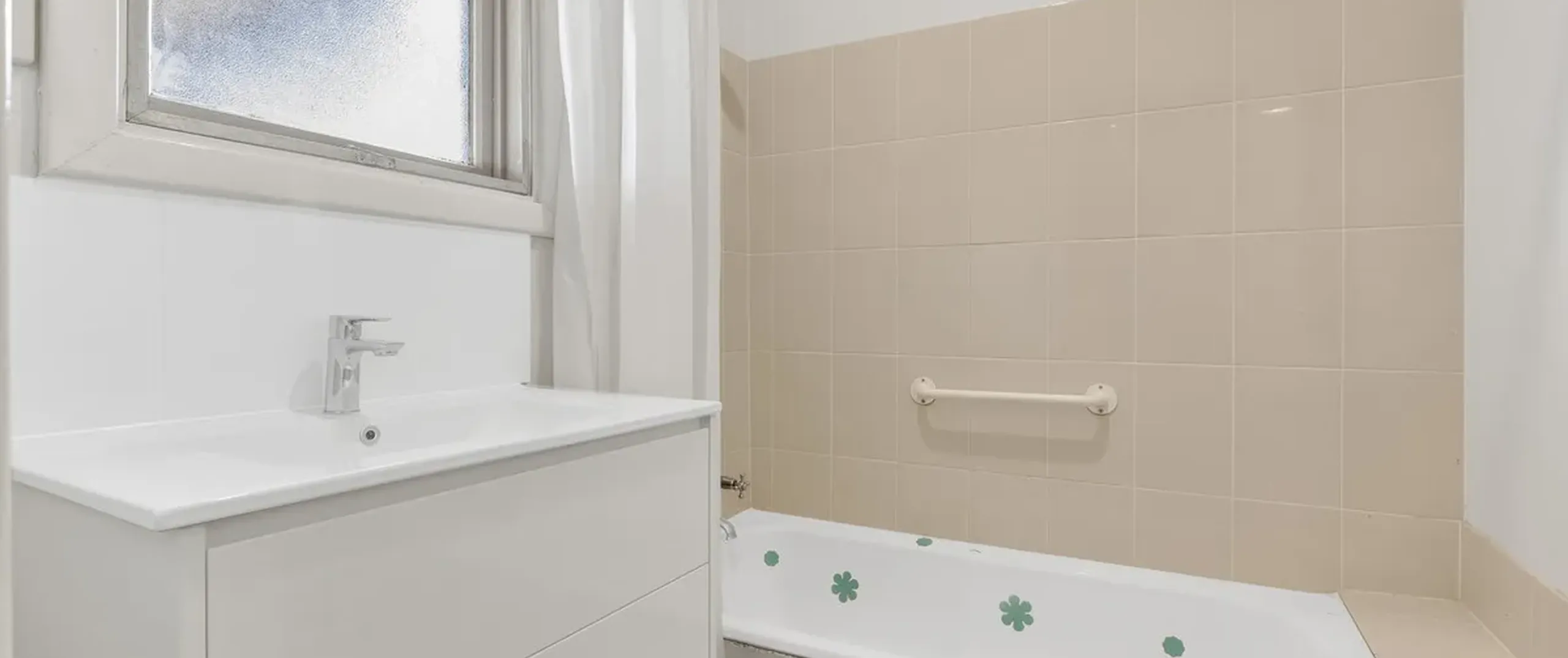 - Neat and tidy main bathroom with shower and bath duo and vanity with extra storage space below