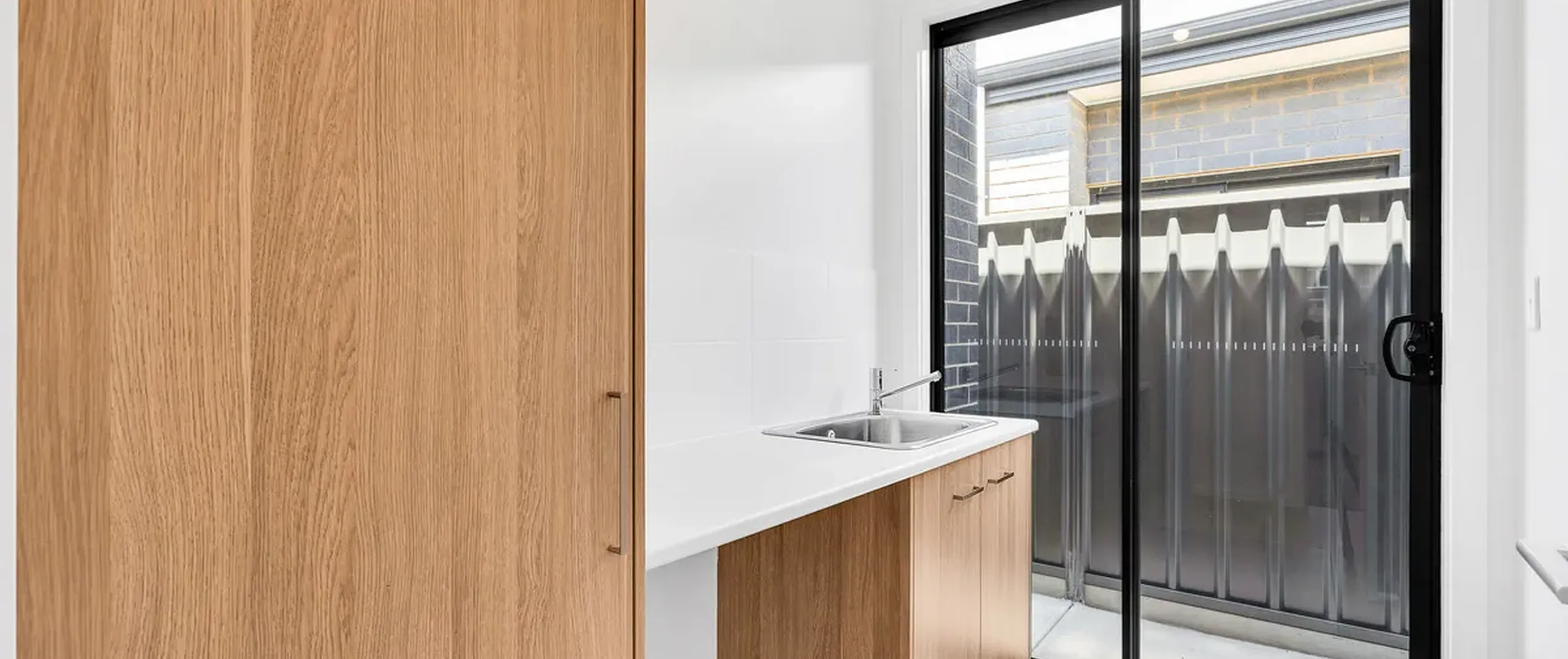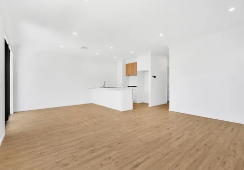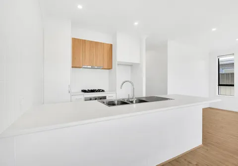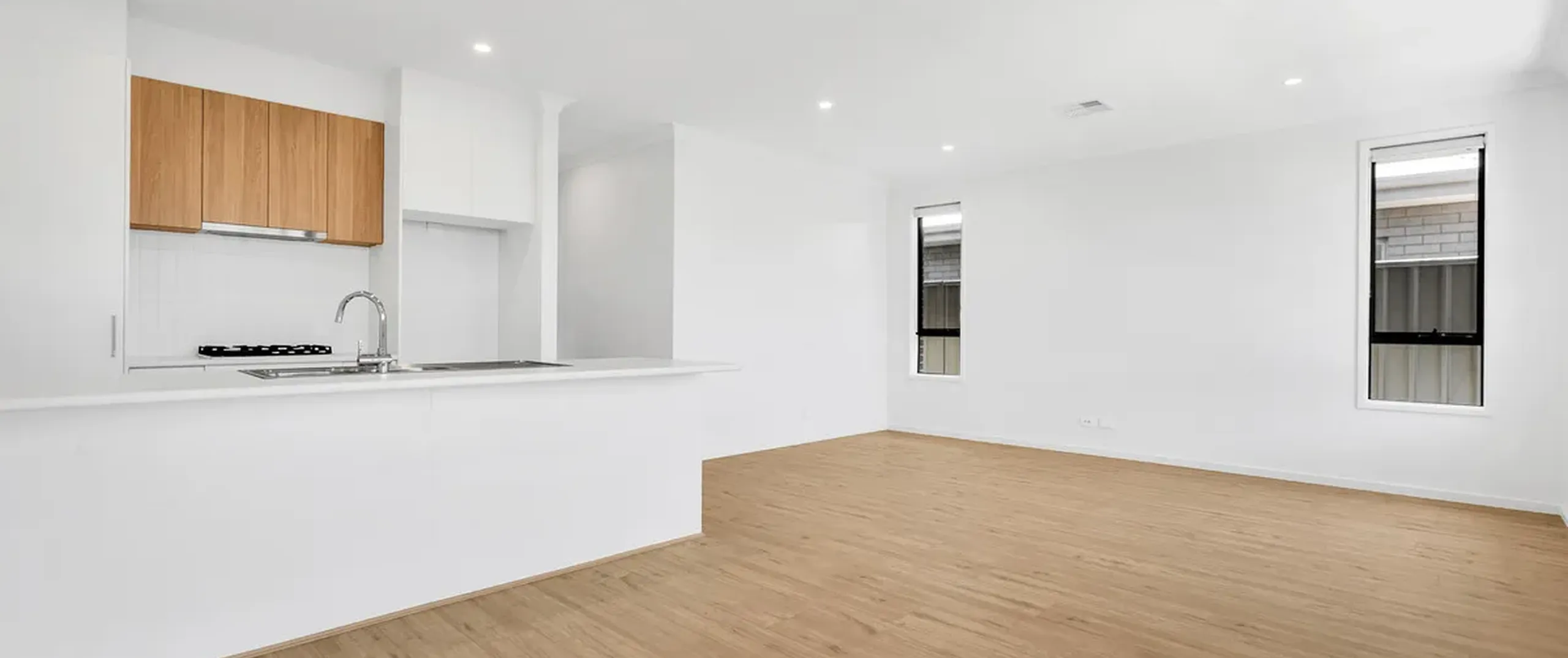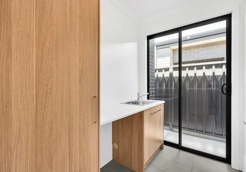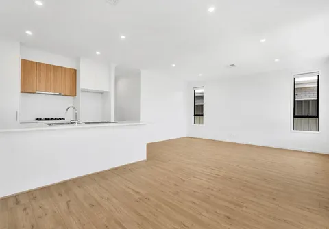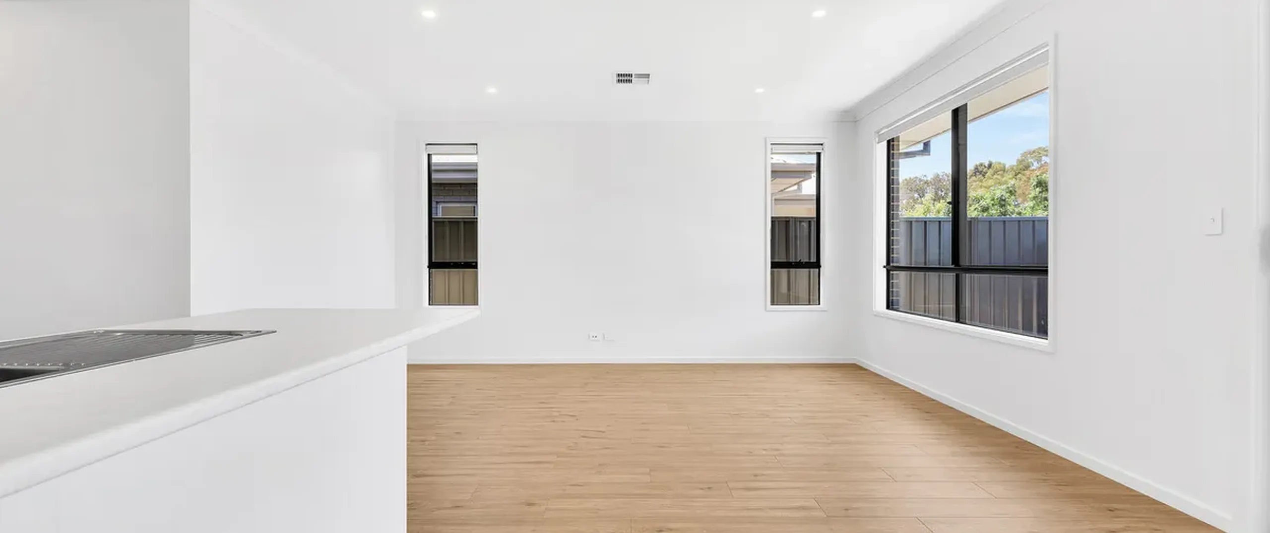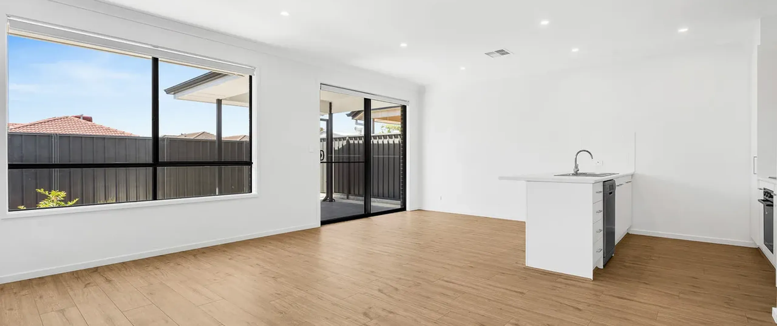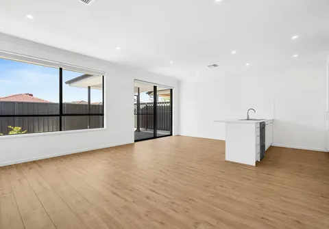 - Modern open-plan living and dining with glass sliding doors leading to the outdoor alfresco
