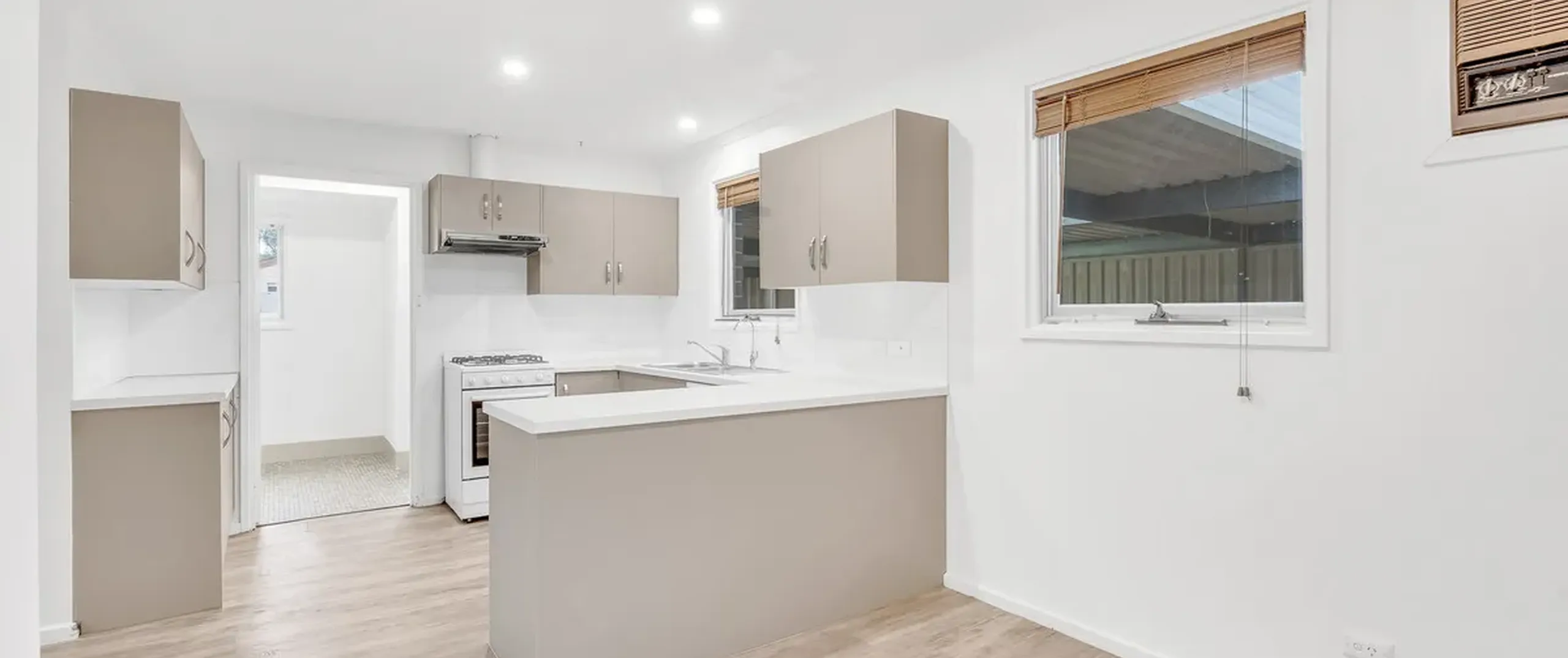 - Updated kitchen with gas cooking, dishwasher, ample cupboard space and sweeping bench tops