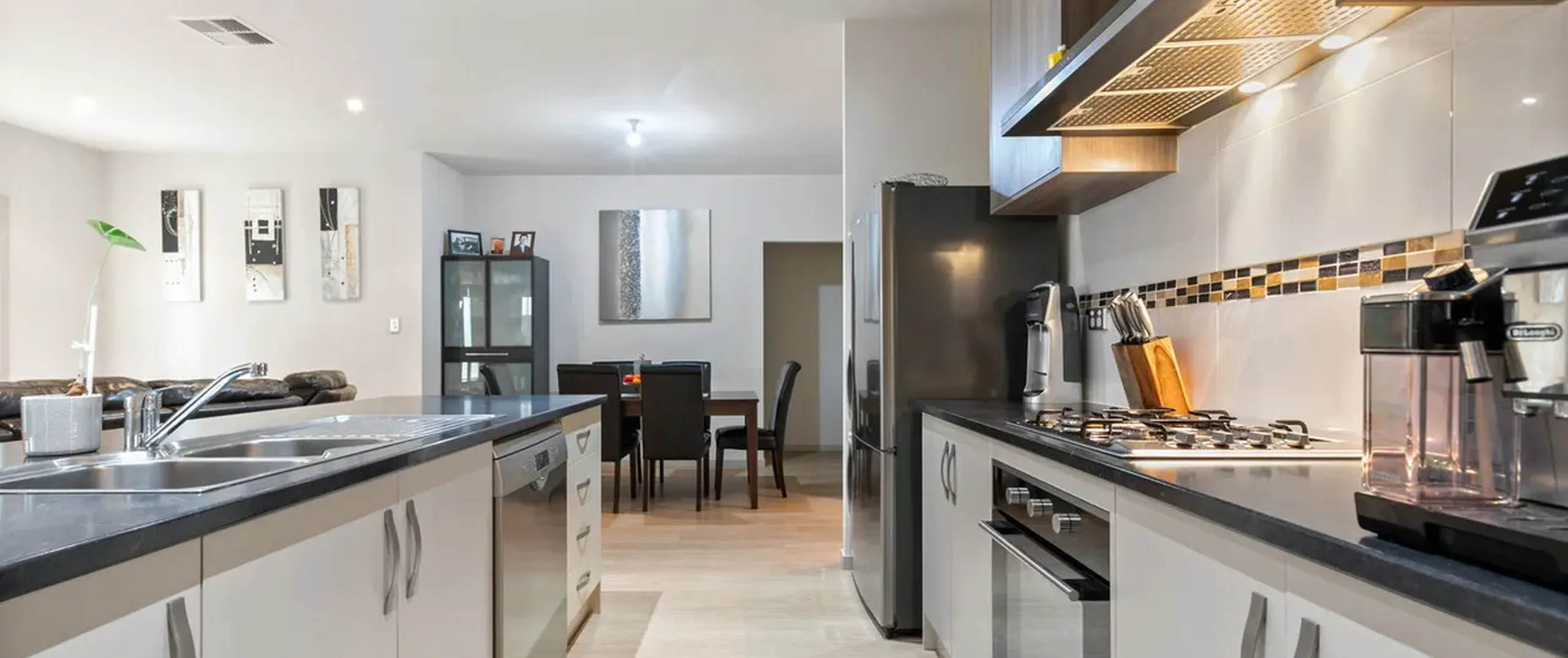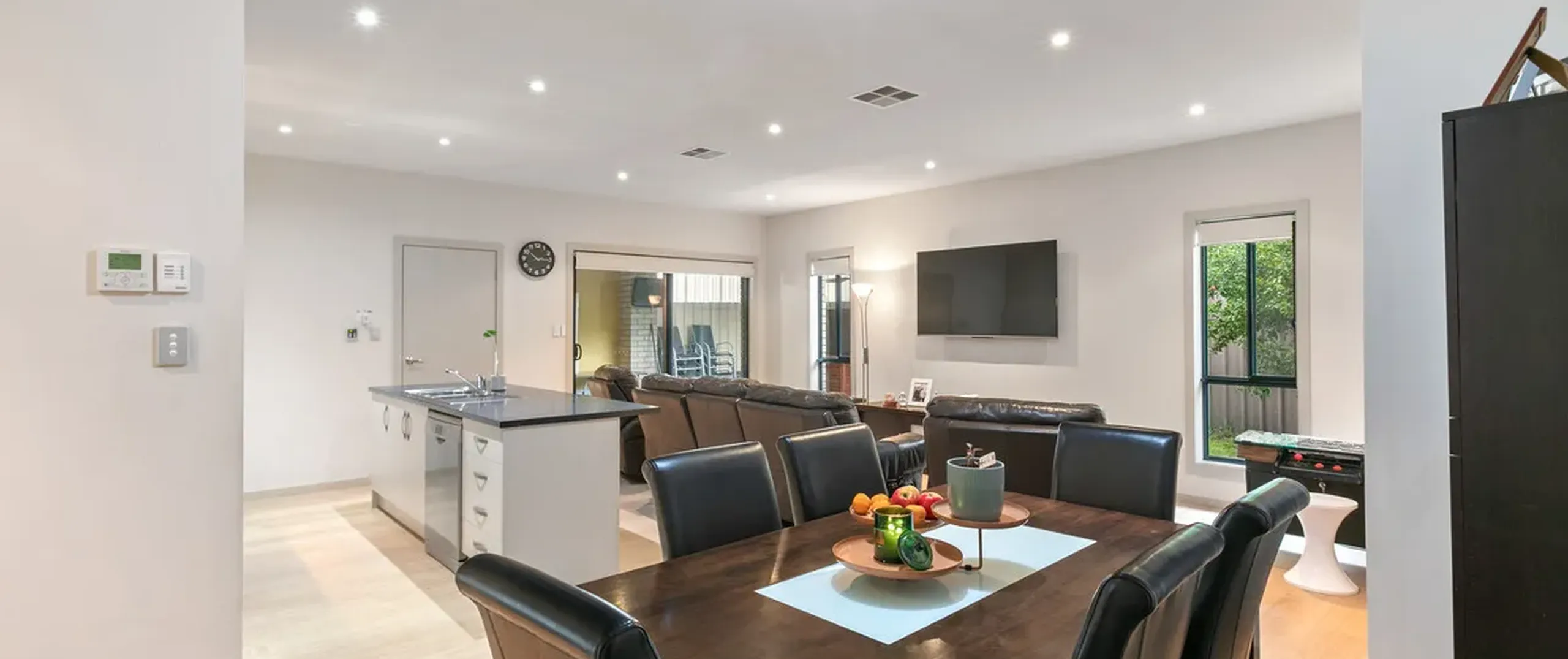 - Light filled open plan living, dining and kitchen with sliding doors leading to alfresco