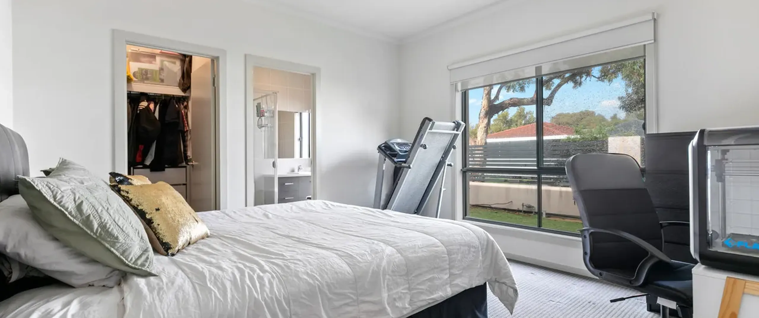 - Generous master bedroom with ceiling fan, walk-in robe and ensuite with floor to ceiling tiles