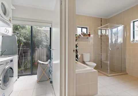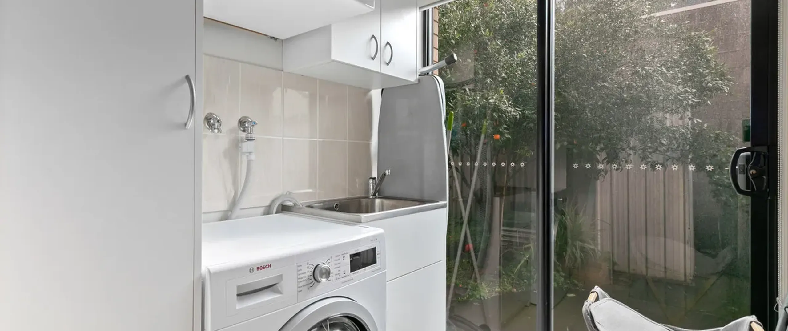 - Practical laundry with linen storage and external access