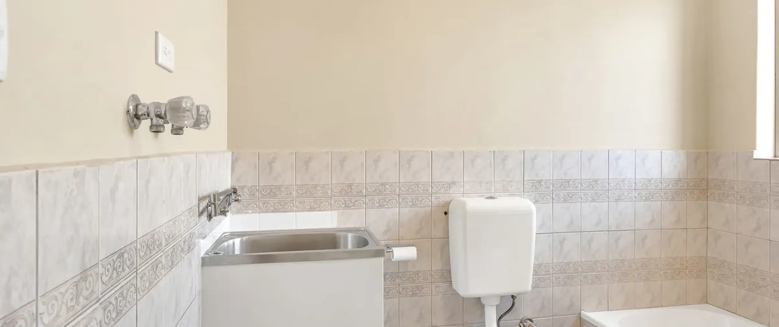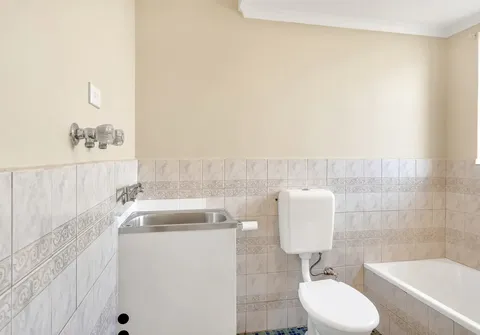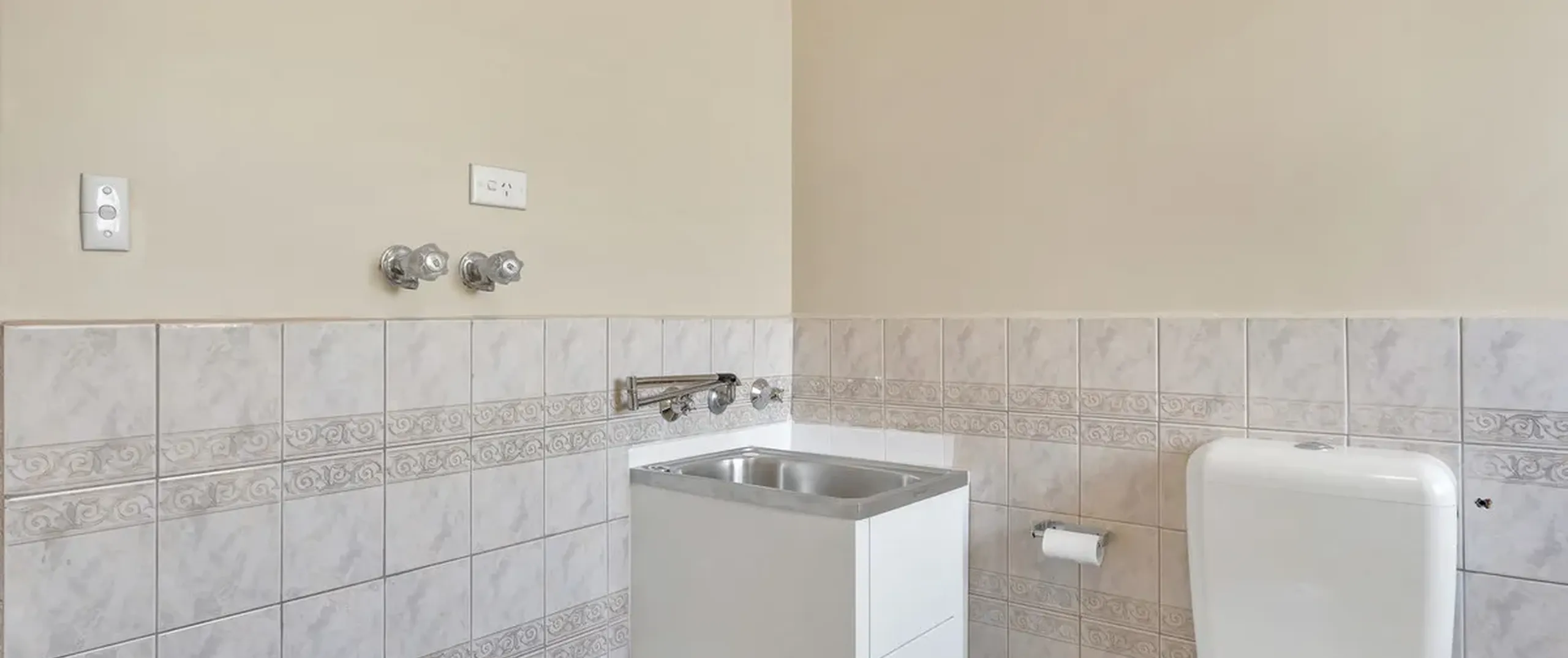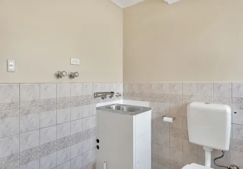 - Neat and tidy joint laundry and bathroom with bath and shower