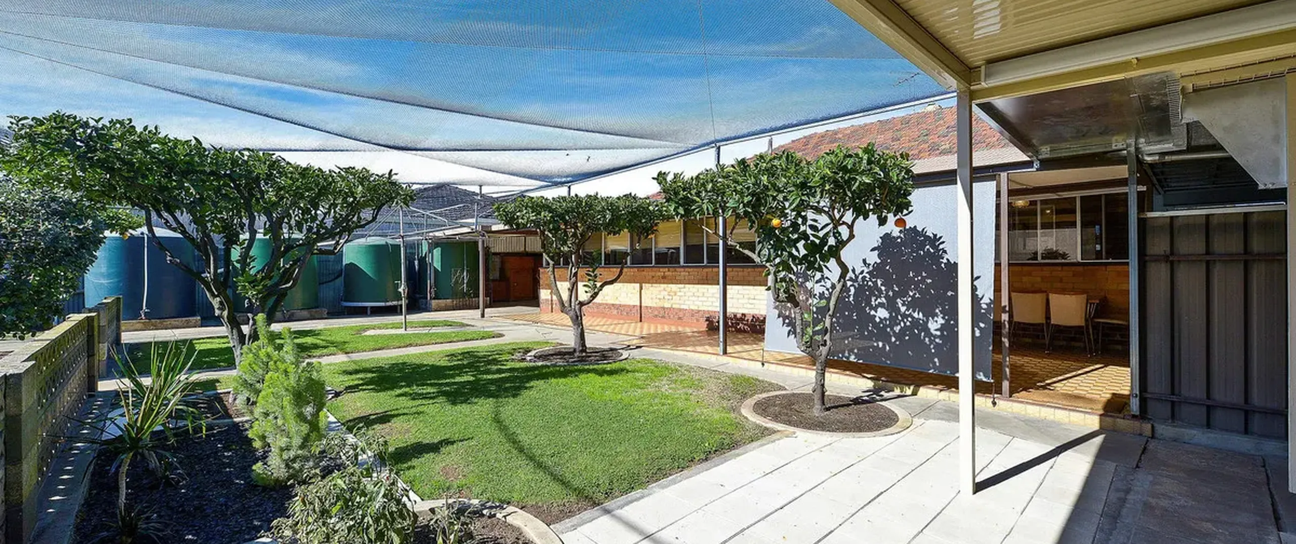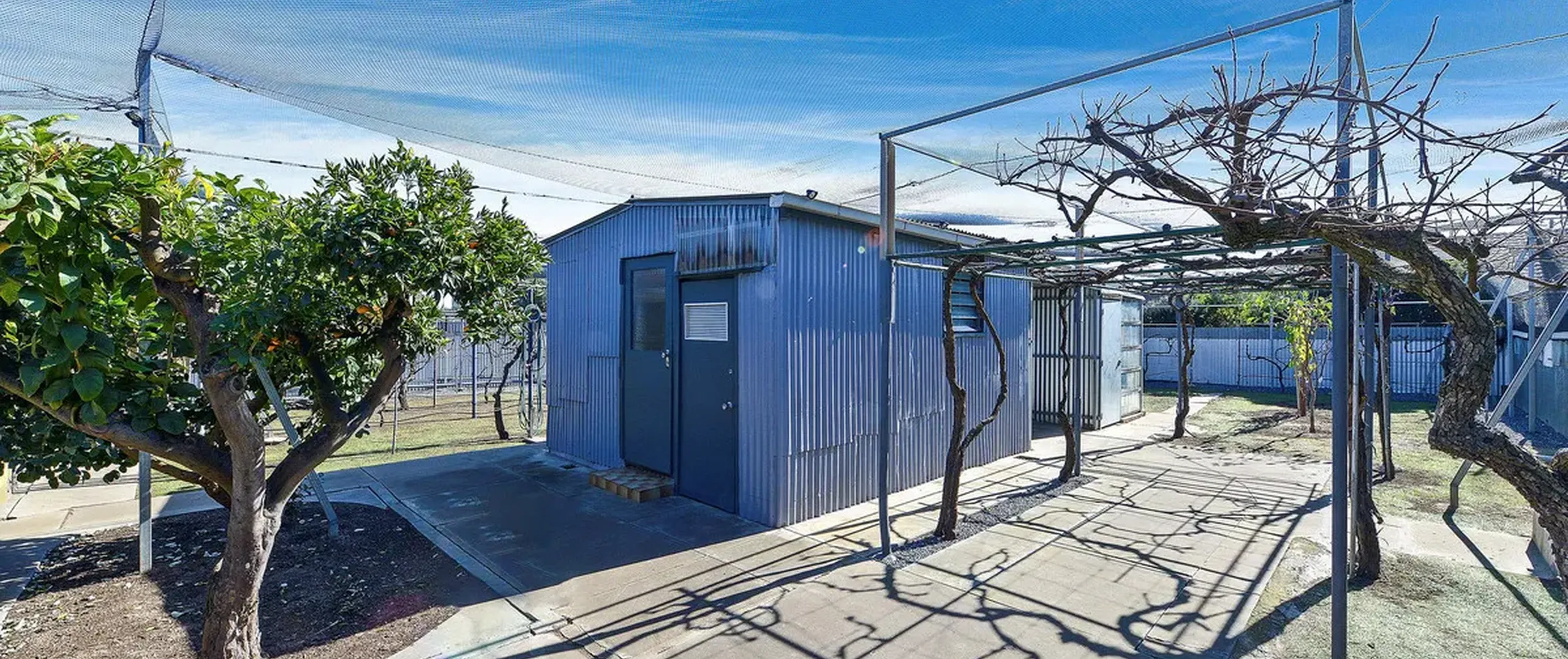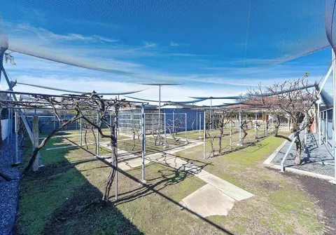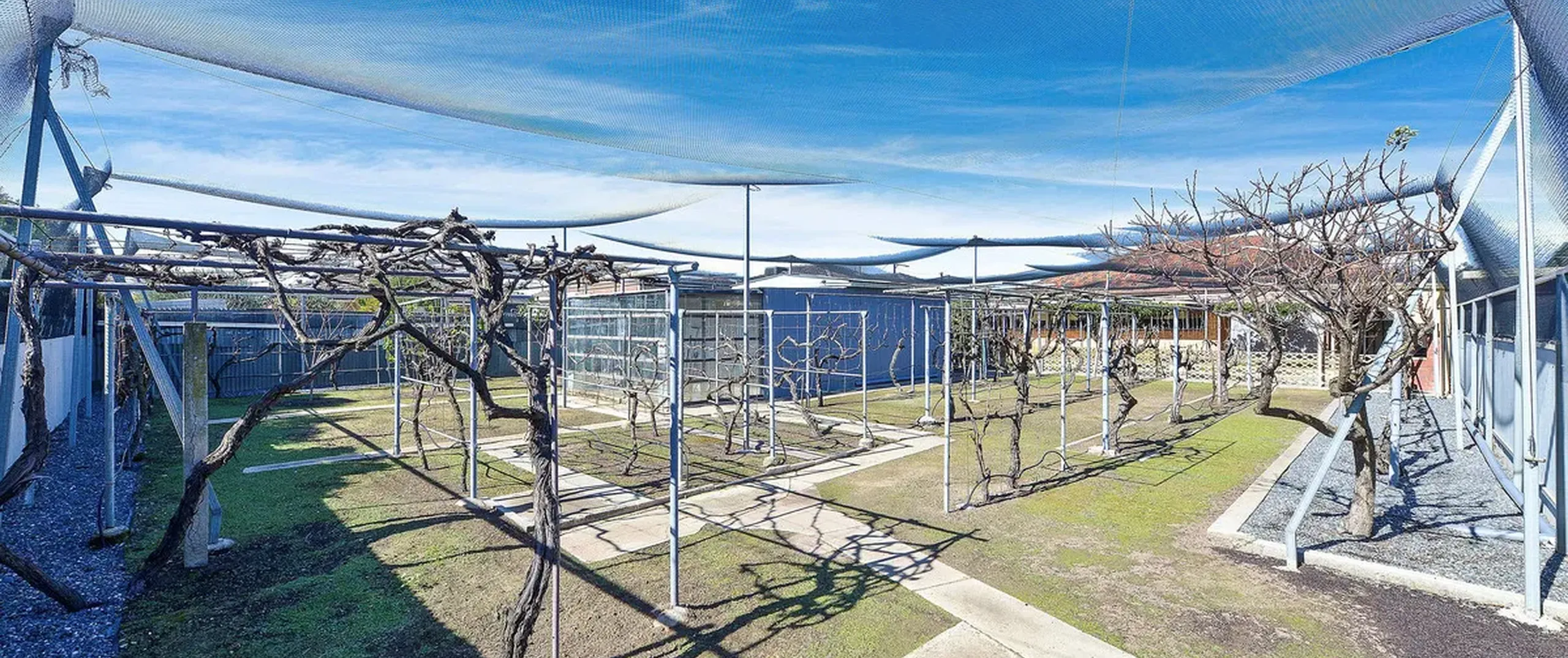 - Standout back yard with a netted mixed orchid including grape vines and a variety of fruit trees