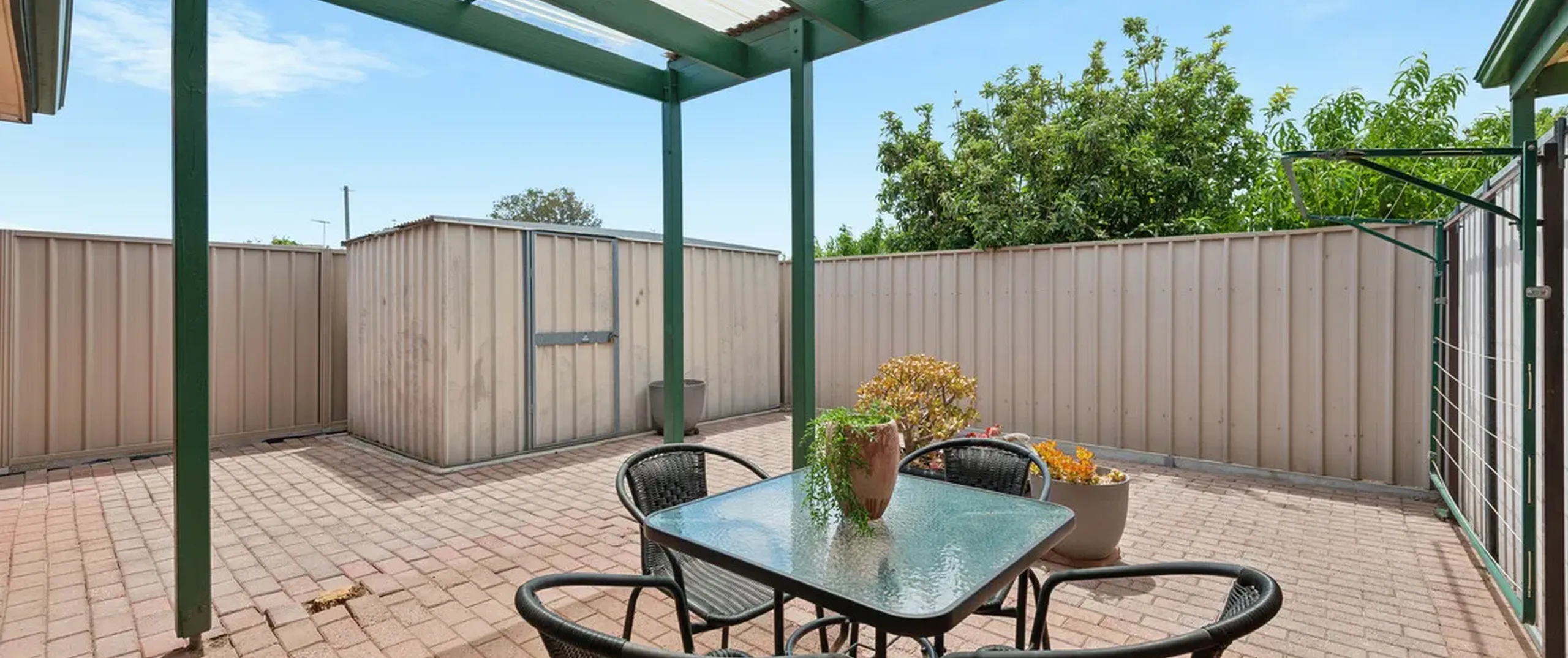 - Inviting rear rear courtyard with garden shed