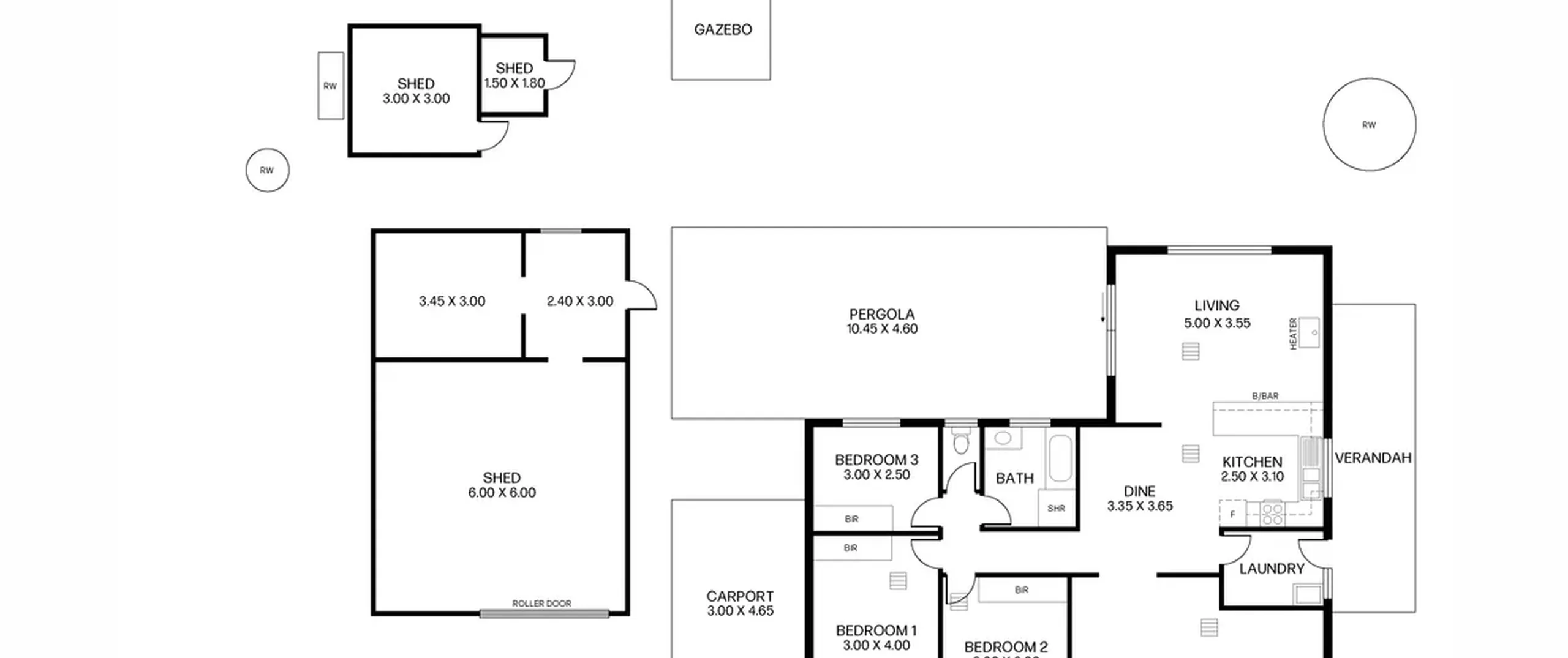 - Three rainwater tanks