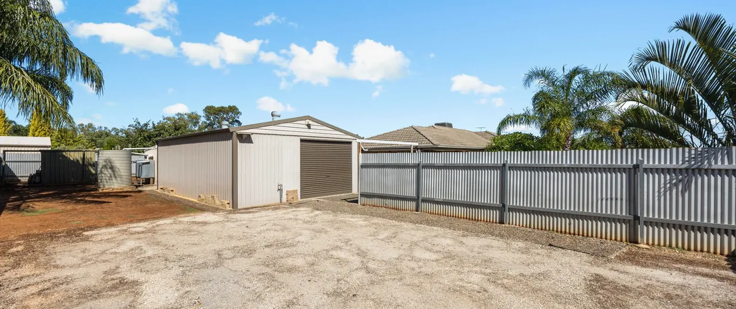 - Large detached shed with roller door and external access