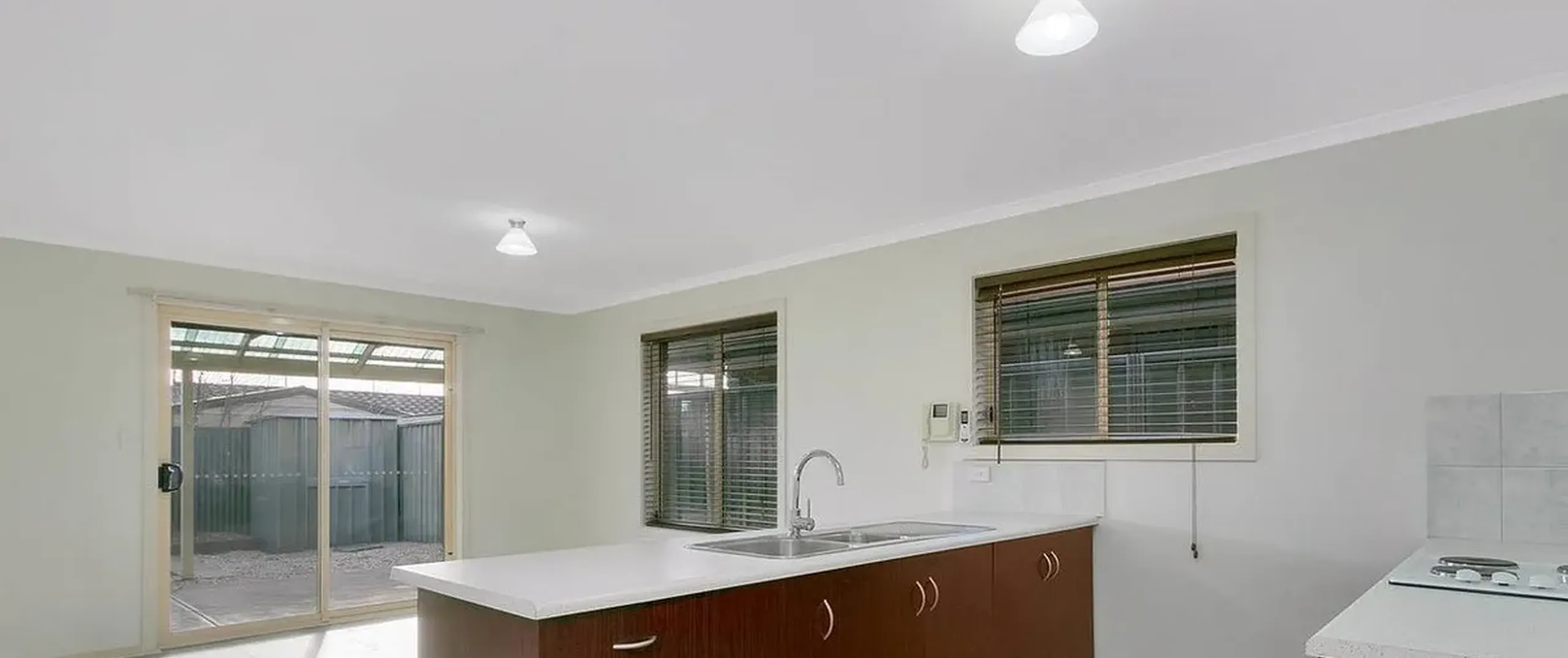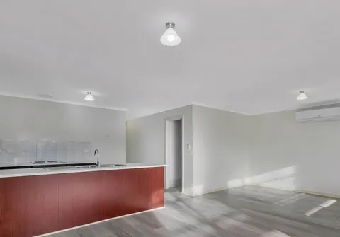 - Light-filled open-plan kitchen, living and dining area with split system air conditioner and sliding doors to the backyard