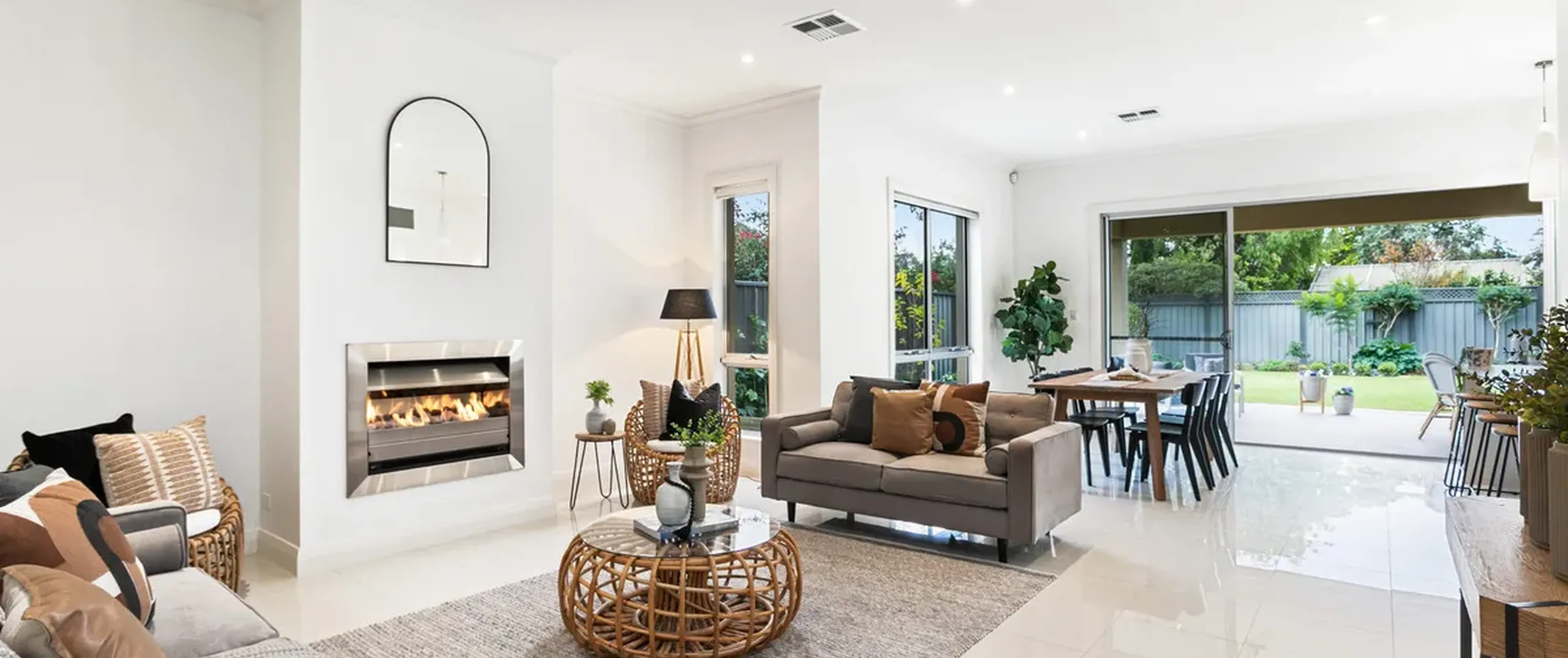 - Commodious open plan dining and living area with heater and sliding door access to the outdoor entertaining area