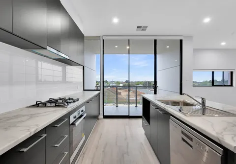 - Modern kitchen with gas cooktop, dishwasher, ample bench and storage space