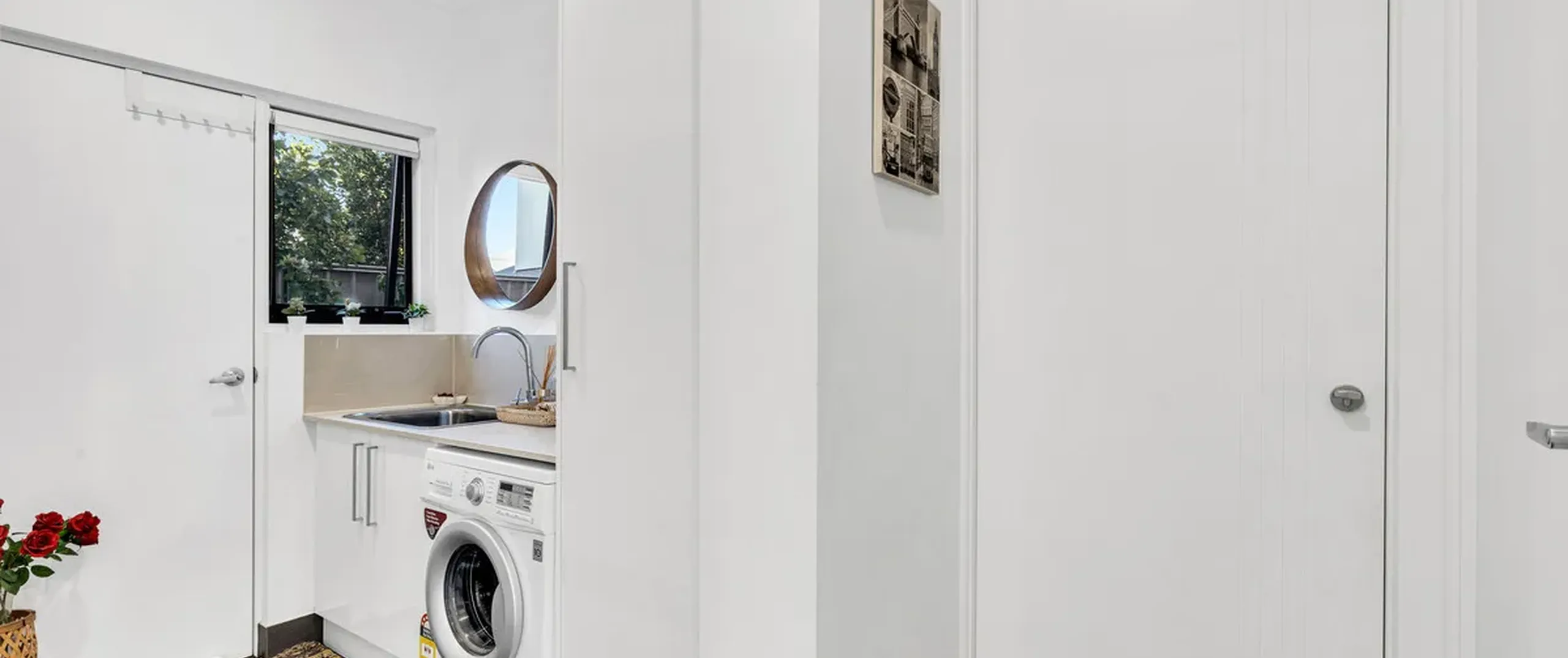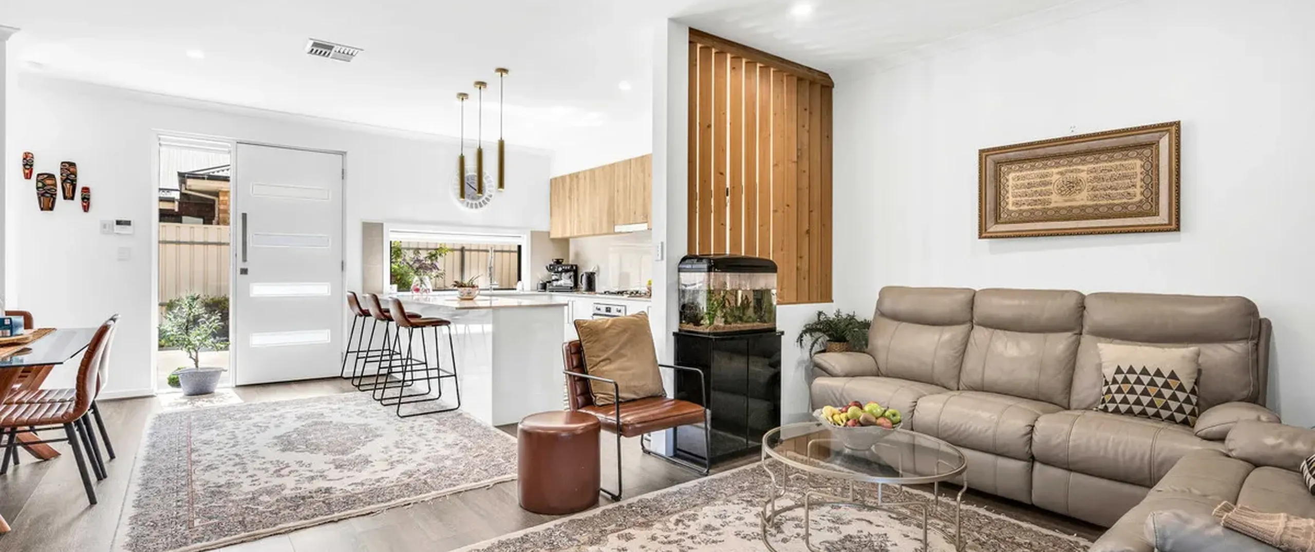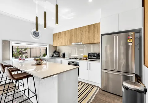 - 2.7-metre-high ceilings and LED lighting on both levels with timber laminate flooring throughout and carpeted bedrooms