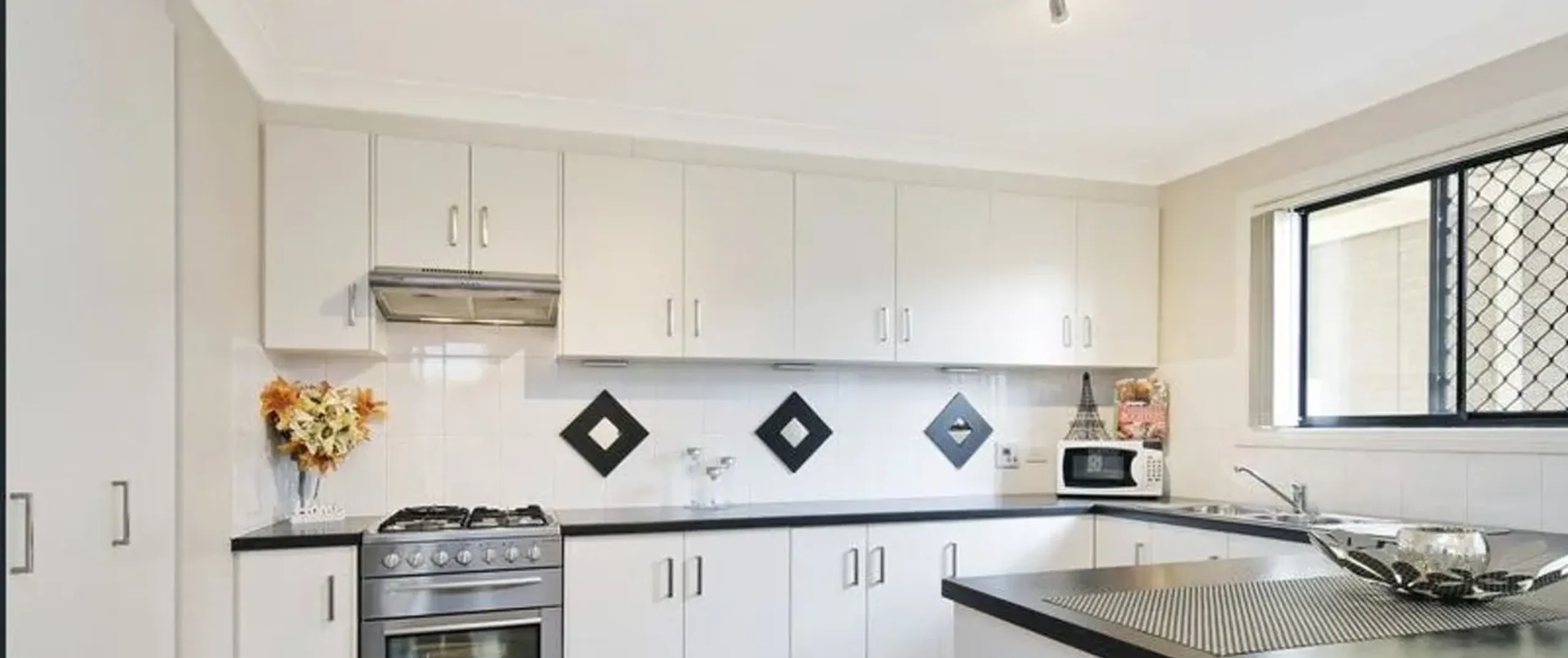 - Bright kitchen with gas cooking, breakfast bar, plenty of bench and storage space