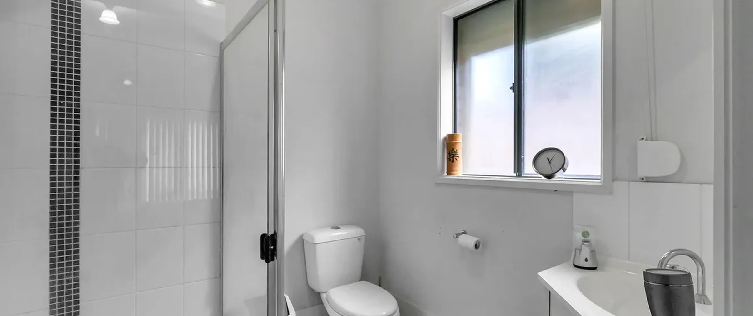 - Main bathroom with separate bath and shower
