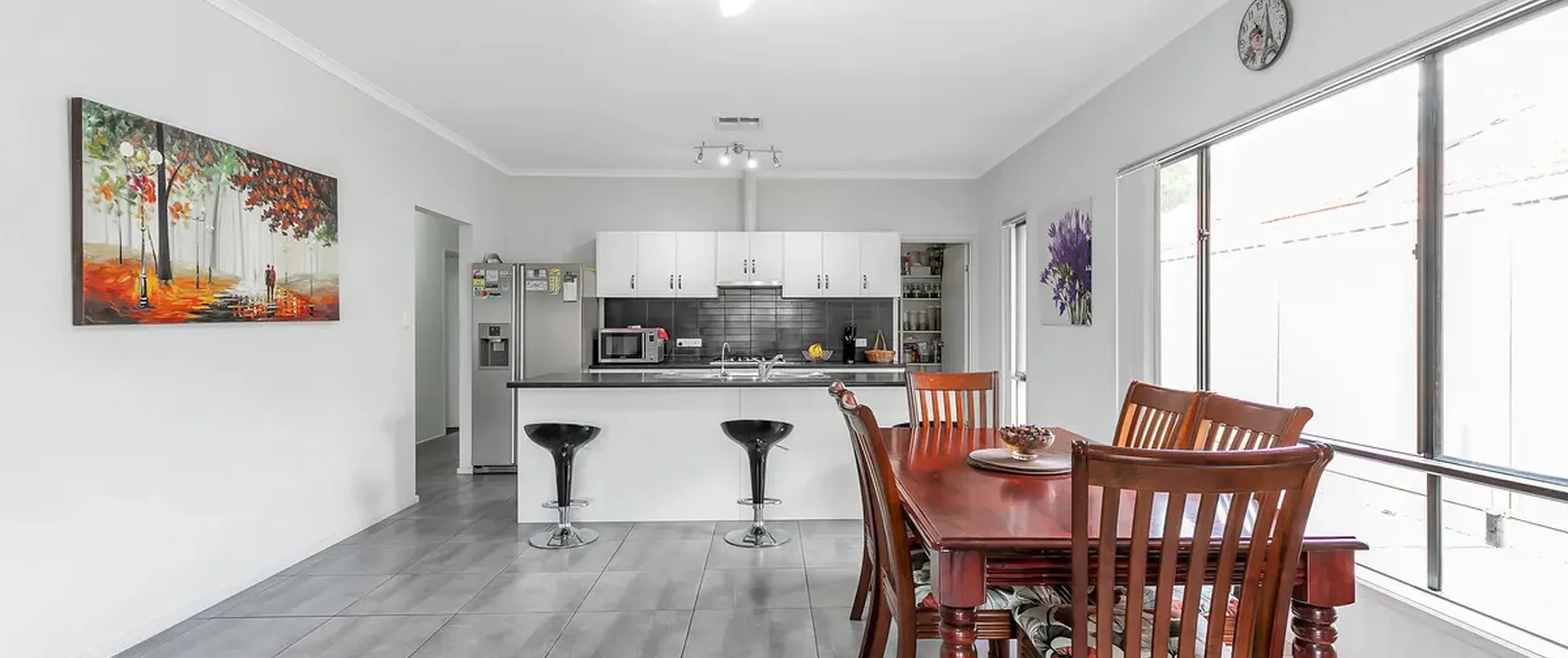 - Stylish kitchen with stainless steel appliances, gas cooktop, breakfast bar and ample bench and cupboard space