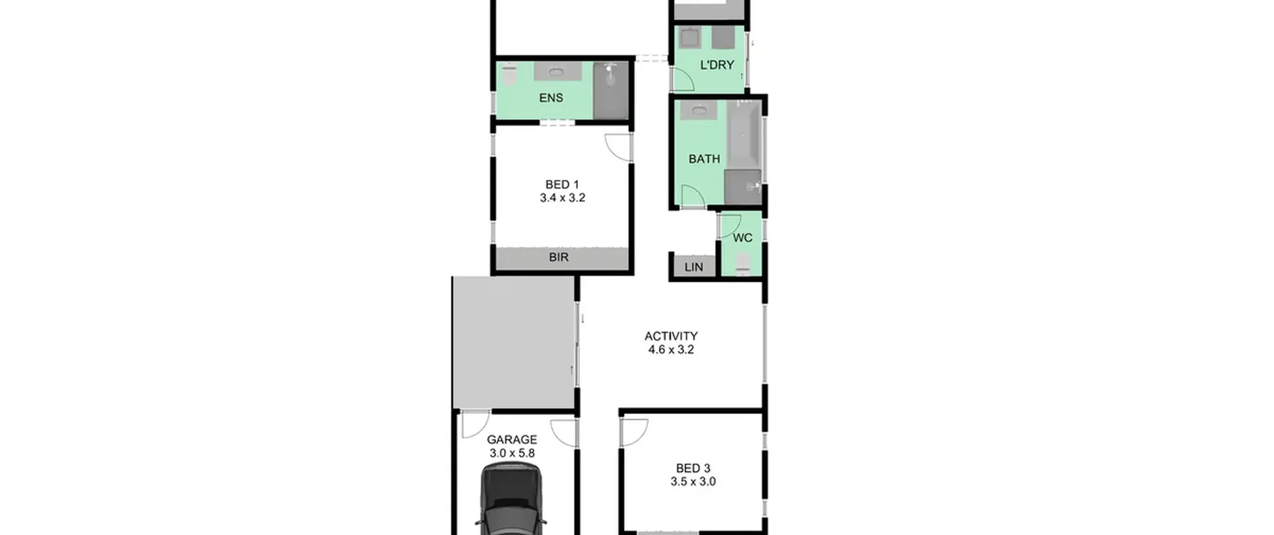 - Single garage with automatic roller door and internal access