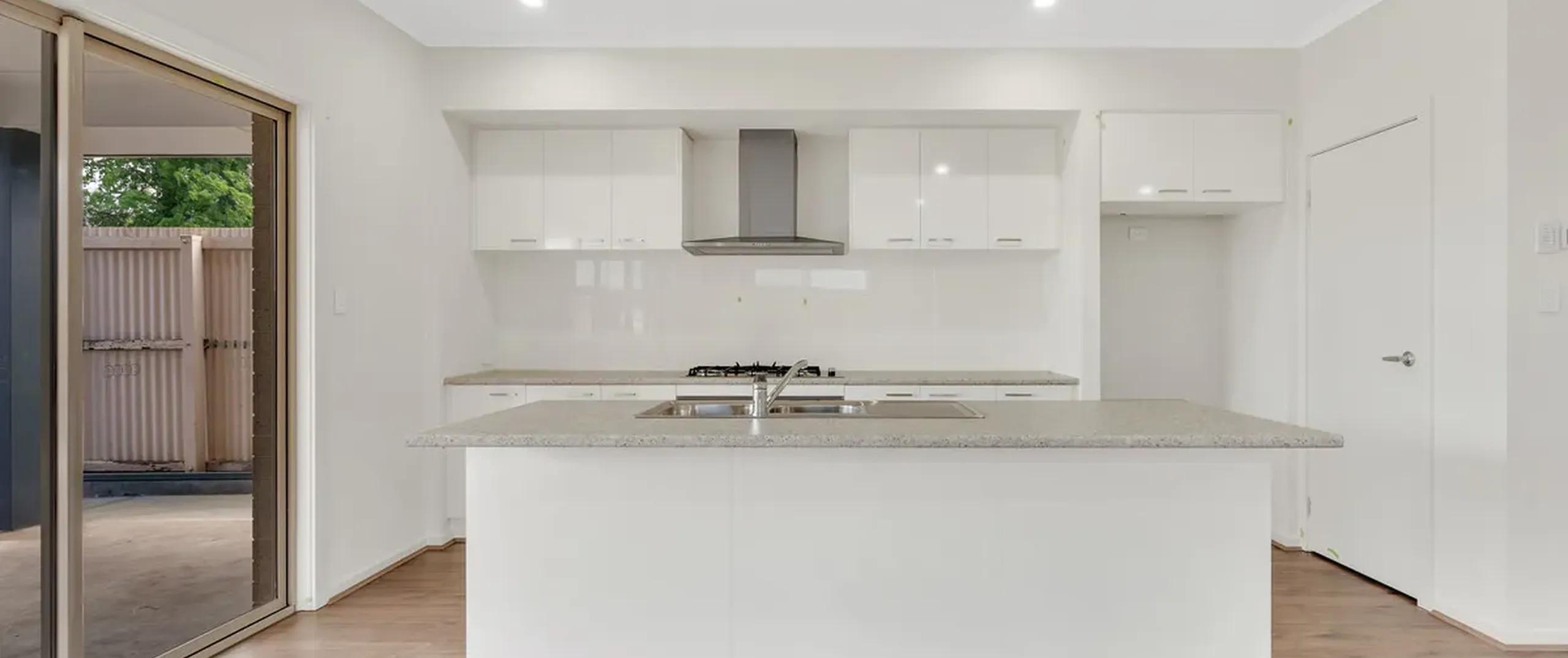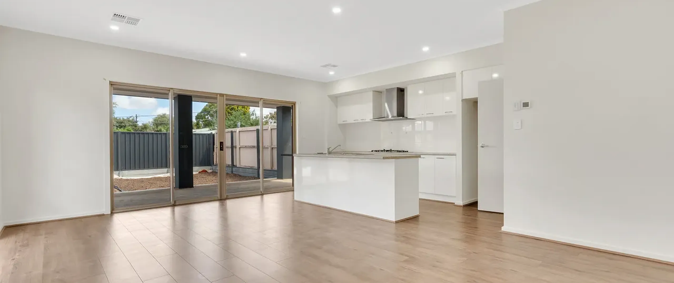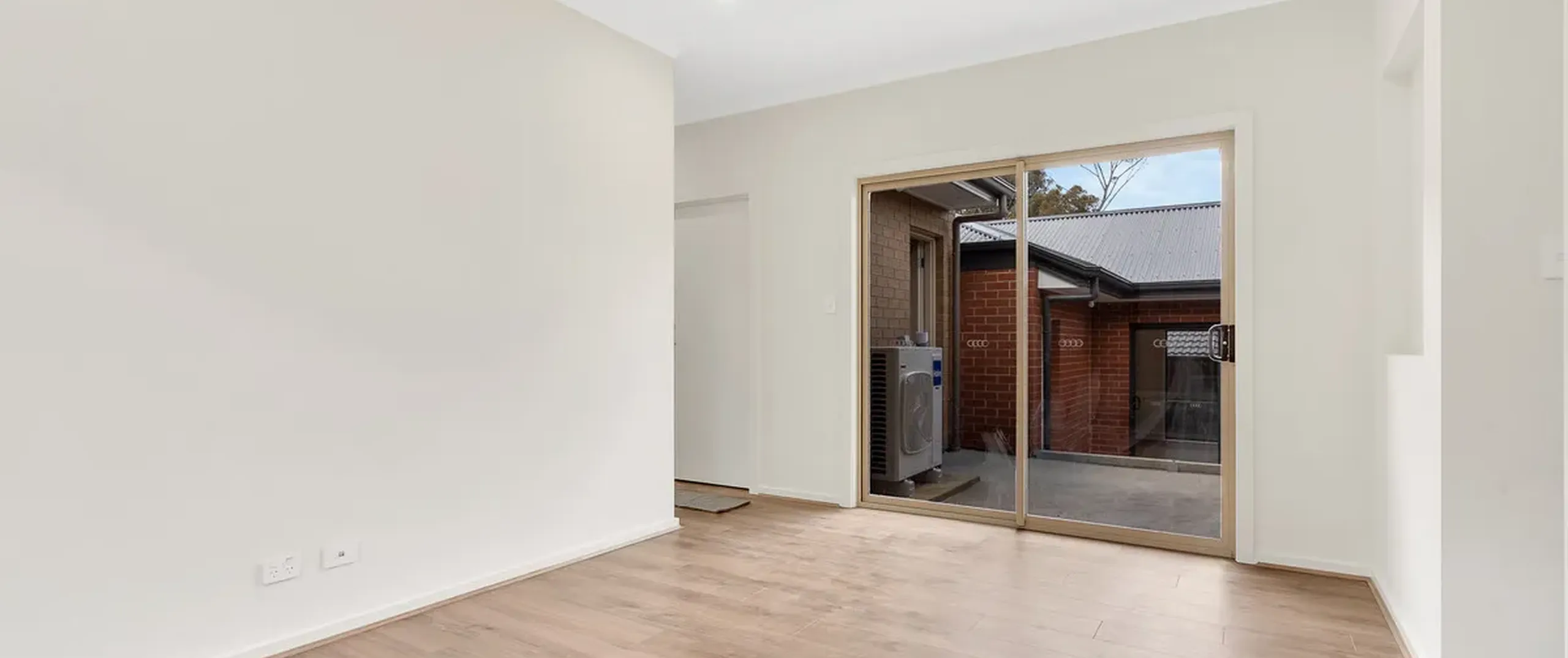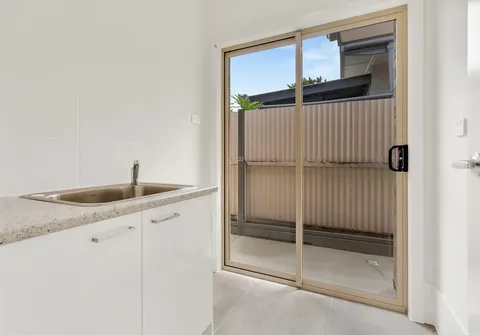 - The sliding door opens to the rear courtyard, seamlessly connecting indoor and outdoor spaces
