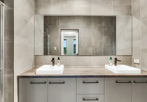 - Large main bedroom with a walk in robe with a beautiful ensuite that features floor to ceiling tiles, double vanity and a rain shower