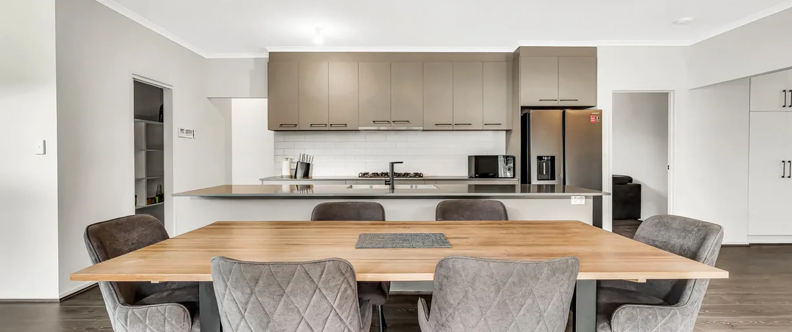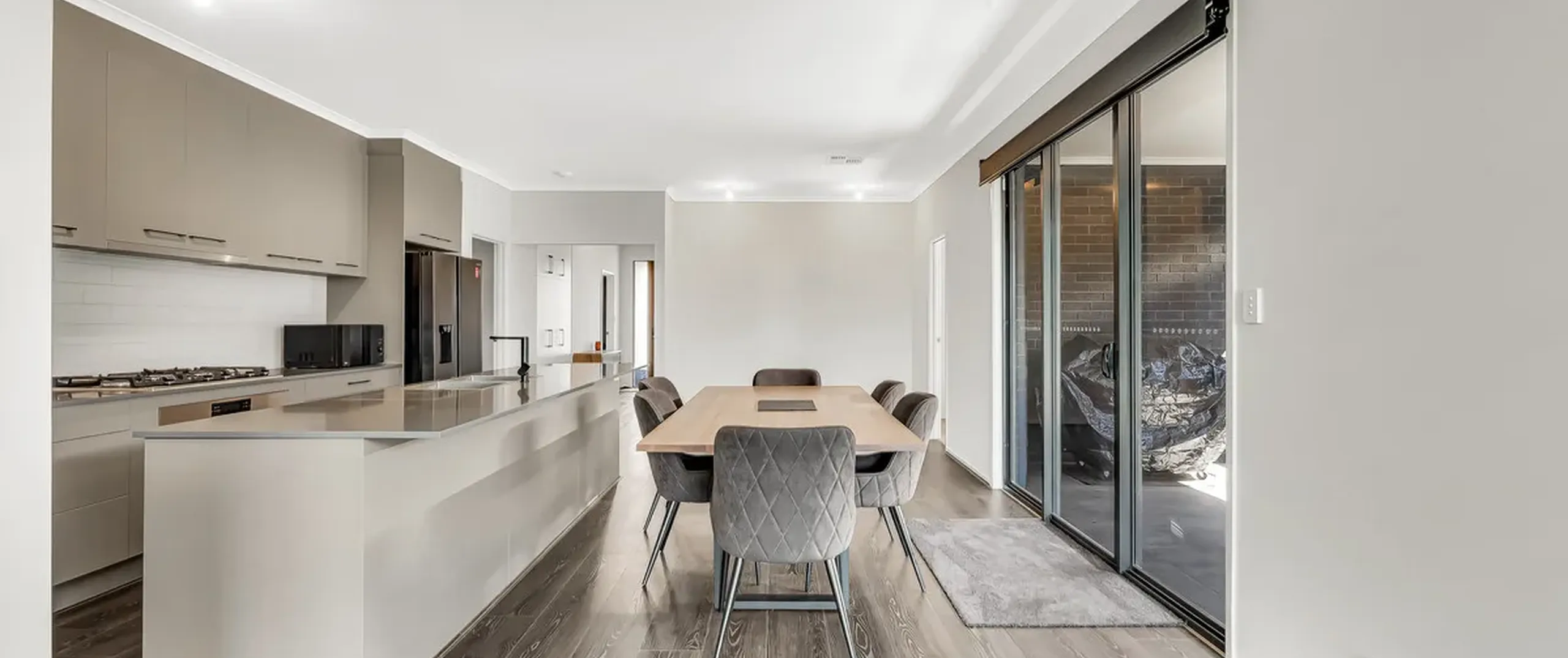 - Light filled open plan living, dining and kitchen with sliding door access to patio