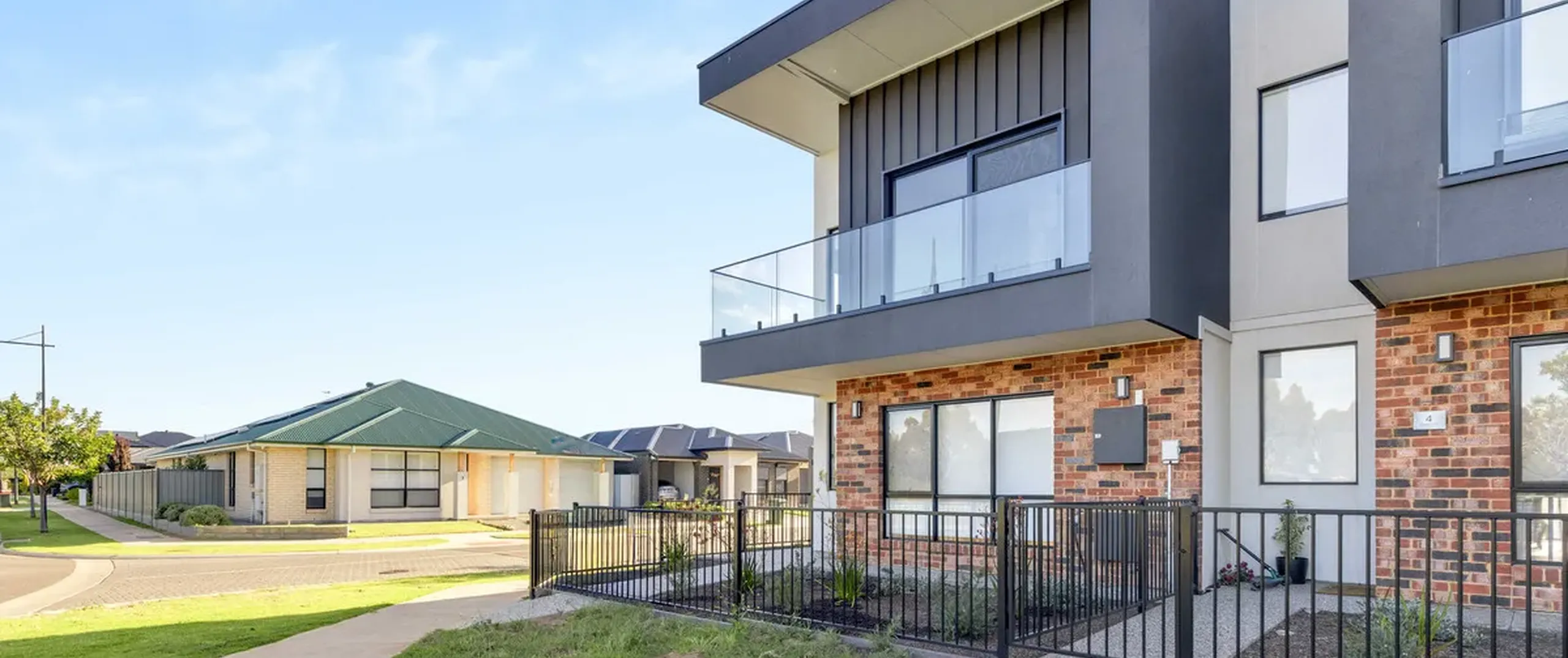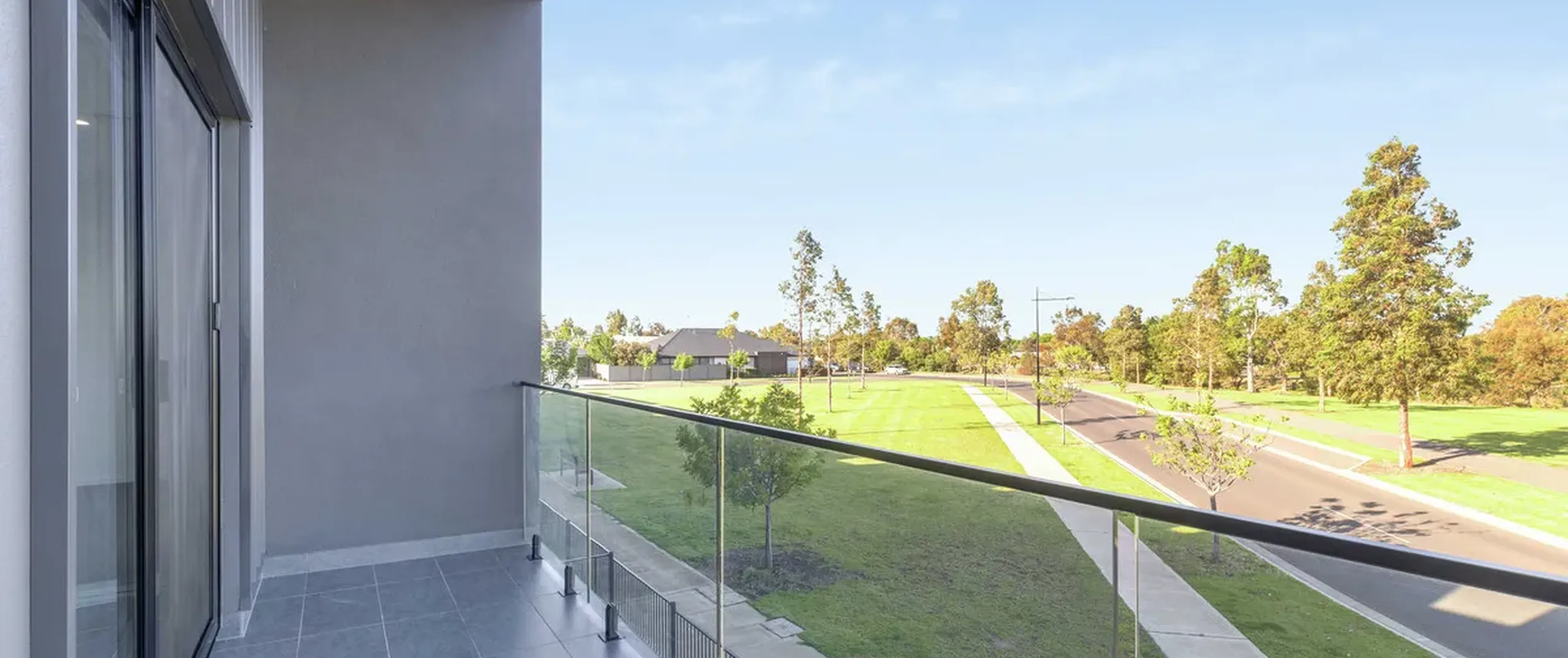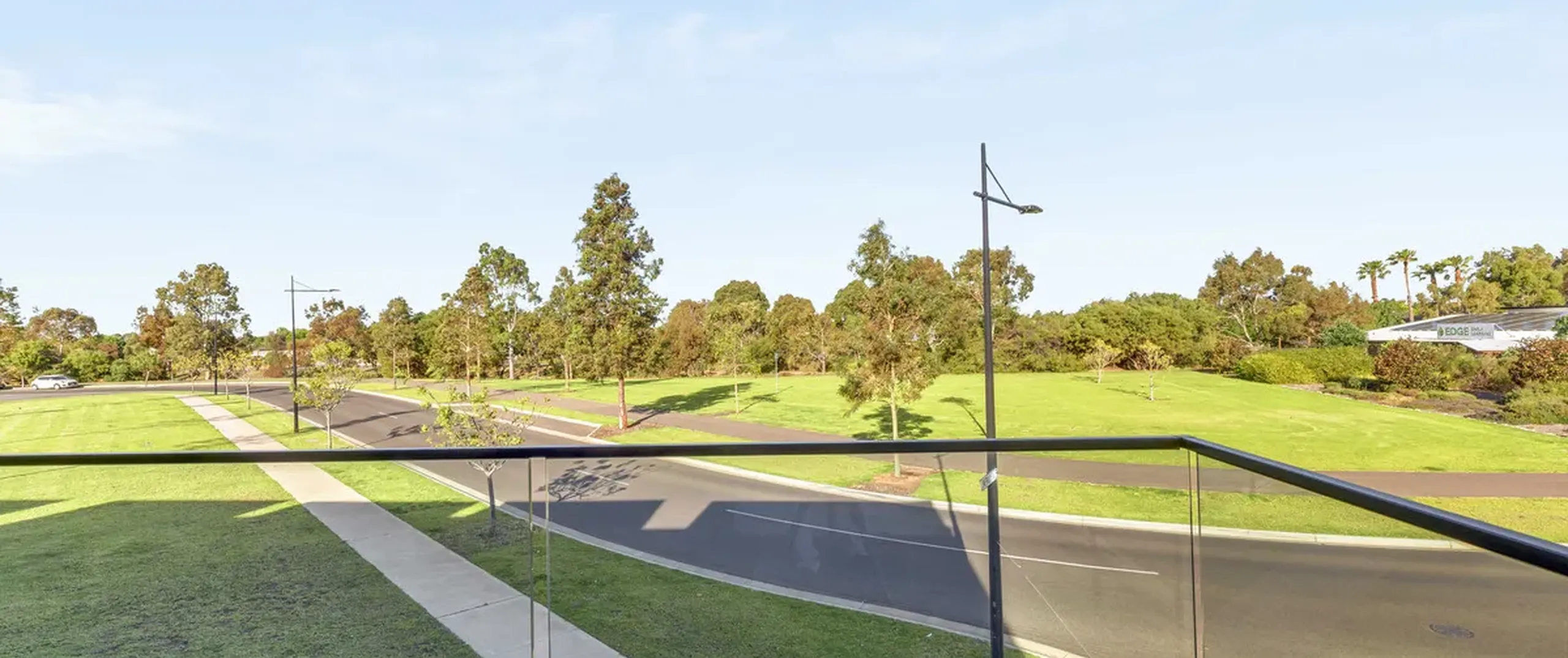 - Modern, black-framed glass balustrade to balcony