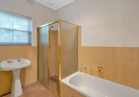 - Bright bathroom with separate bath and shower + toilet
